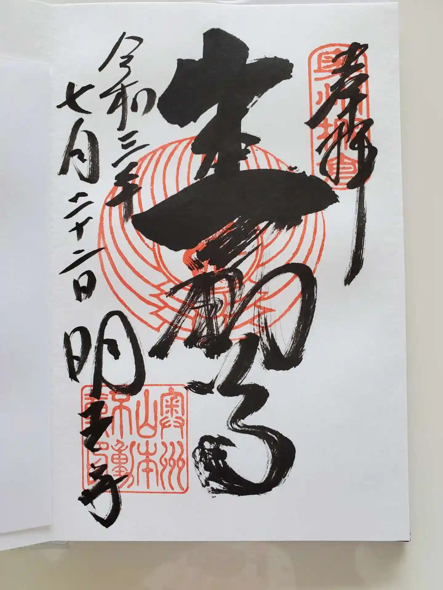 御朱印は直に書いていただけます。力強い筆文字です。