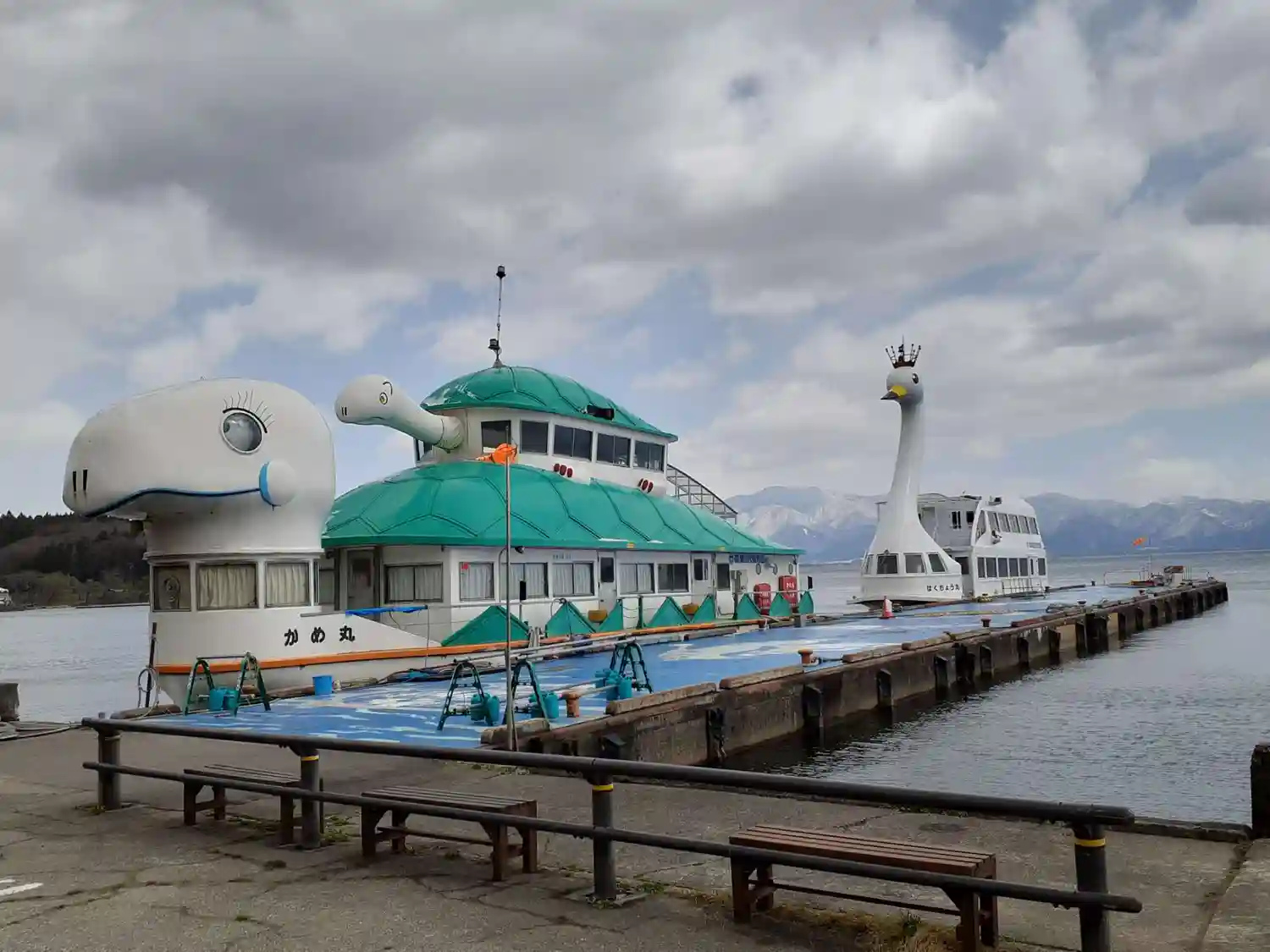 あまりにも会津の天候が良くないので次は“二本松神社”に訪問する事にしました。一般道使用で会津から約1時間半位?猪苗代湖のアヒルの船に遭遇しましたので、休憩します。