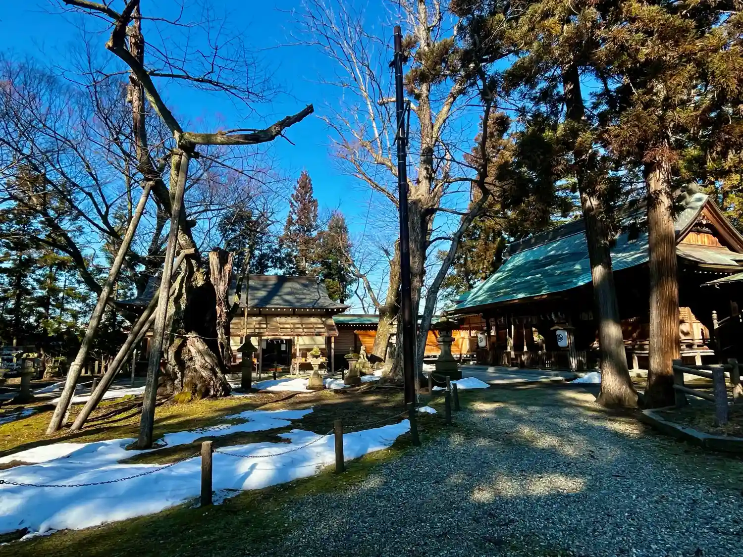 拝殿前に立つ樹齢1,000年、樹高14mの御神木『峰張桜(みねはりざくら)』の桜花祭も終わり、桜の花🌸は見ることが出来ませんでしたが、御神威を感じるキリッとした空気感を感じながら参拝致しました😊
