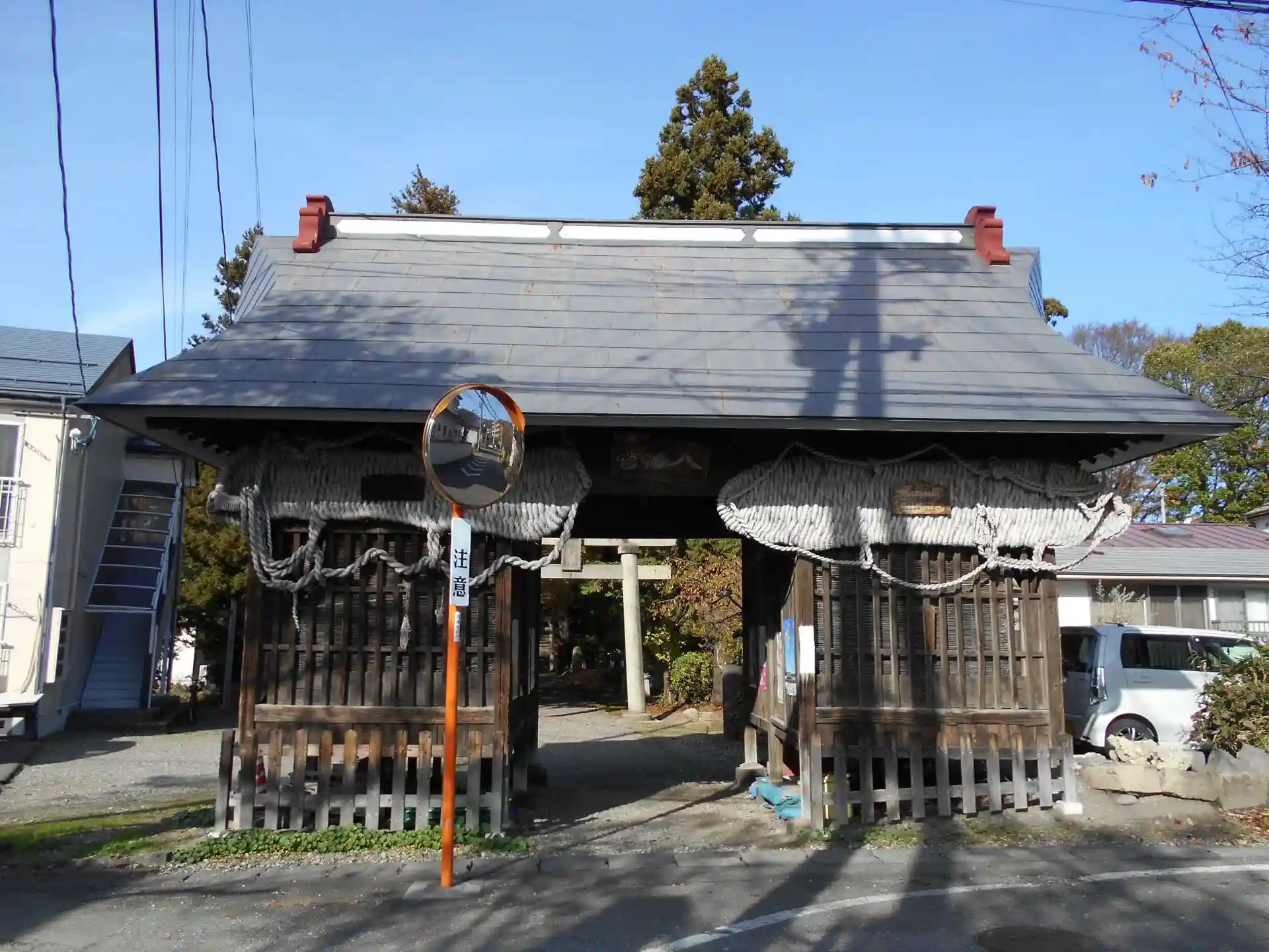 源義家が出羽国征伐の御礼として社殿を建立。動員した農民1万人に一箕ずつ土を運ばせて築いたことから、「一箕」の地名が生まれたということです。西側にある旧滝沢観音堂は、廃仏毀釈により不動川上流に移転しましたが建物は残されていました。