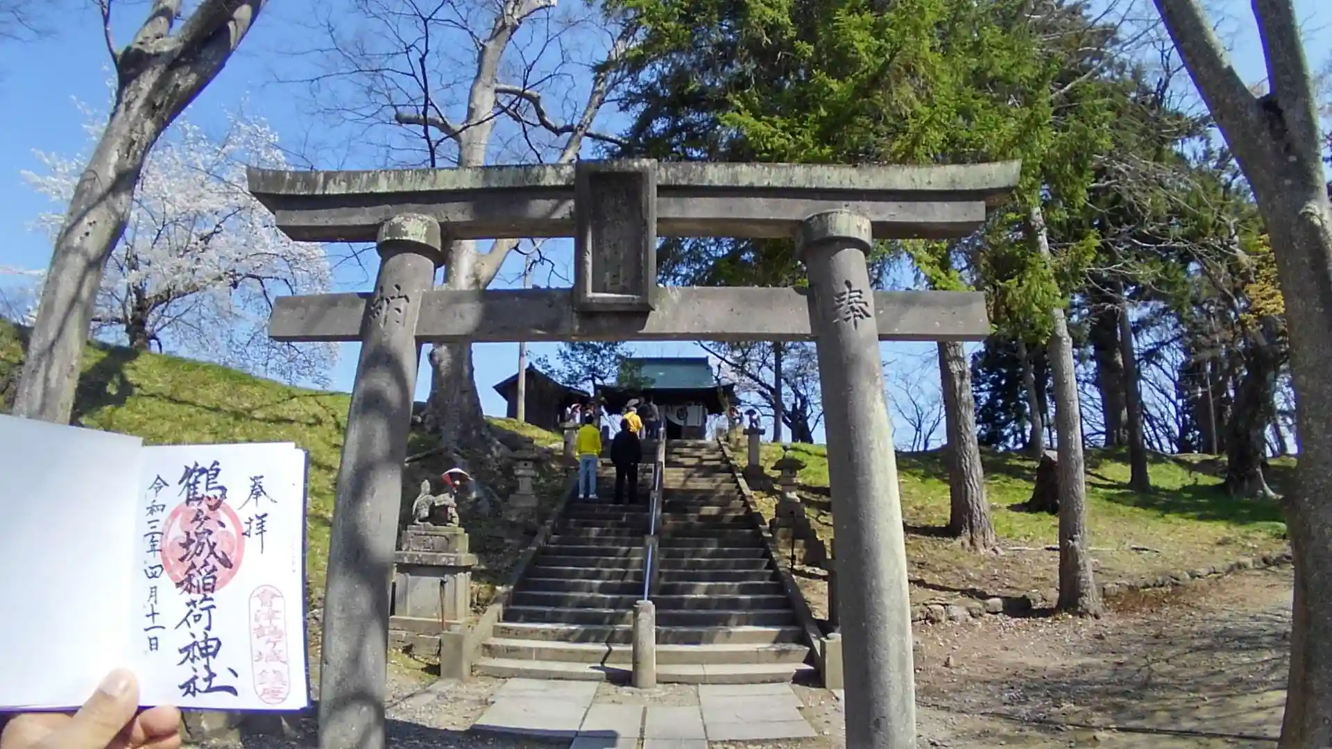 会津地方へのお花見で、まずは当然の鶴ヶ城へ行った際に鶴ヶ城稲荷神社に参拝致しました。御朱印も拝領しましたがスタンプでした(手書きの御朱印は蠶養國神社で拝領出来ます)。
