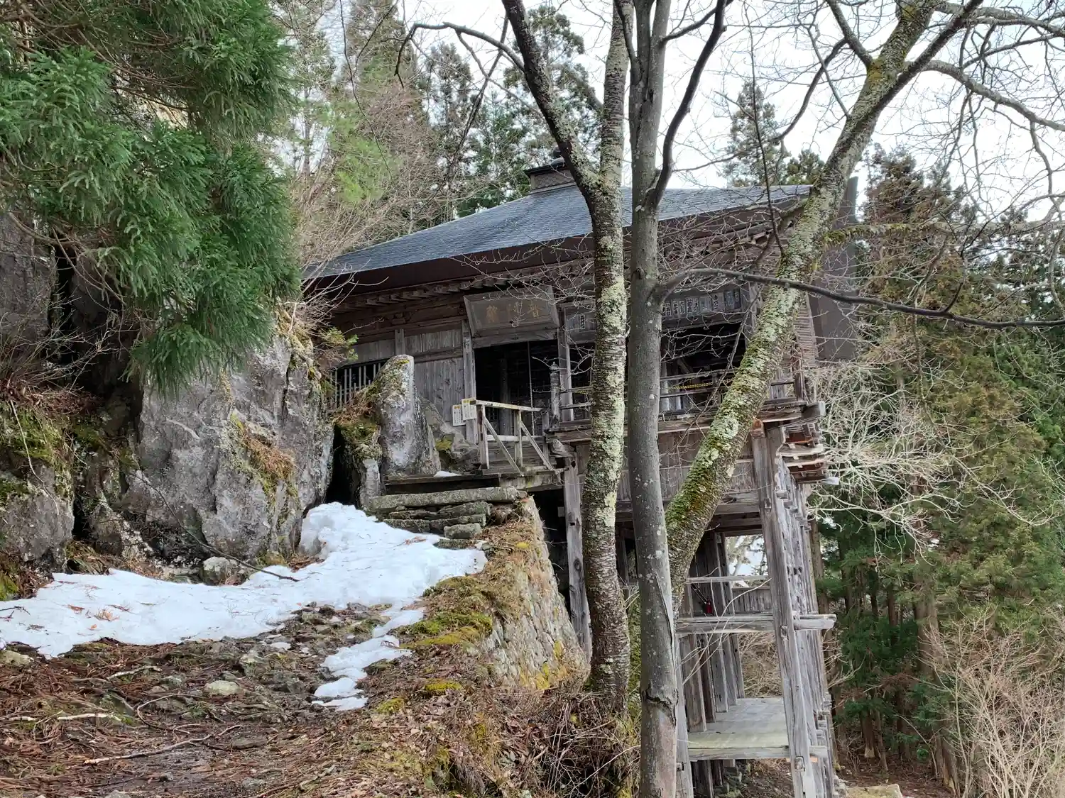 岩に寄り添い造られた懸け造り、ってことかぁ!