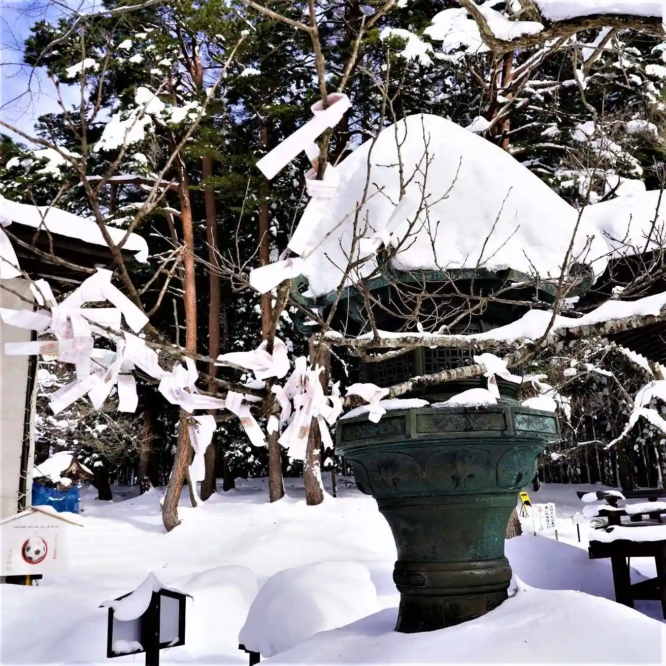 神社は、たくさんの雪で覆われています。