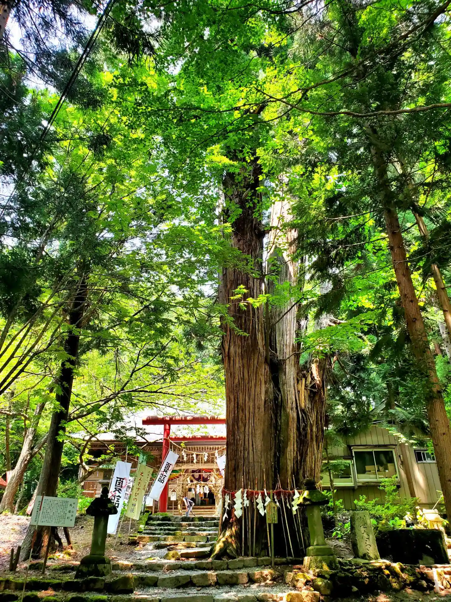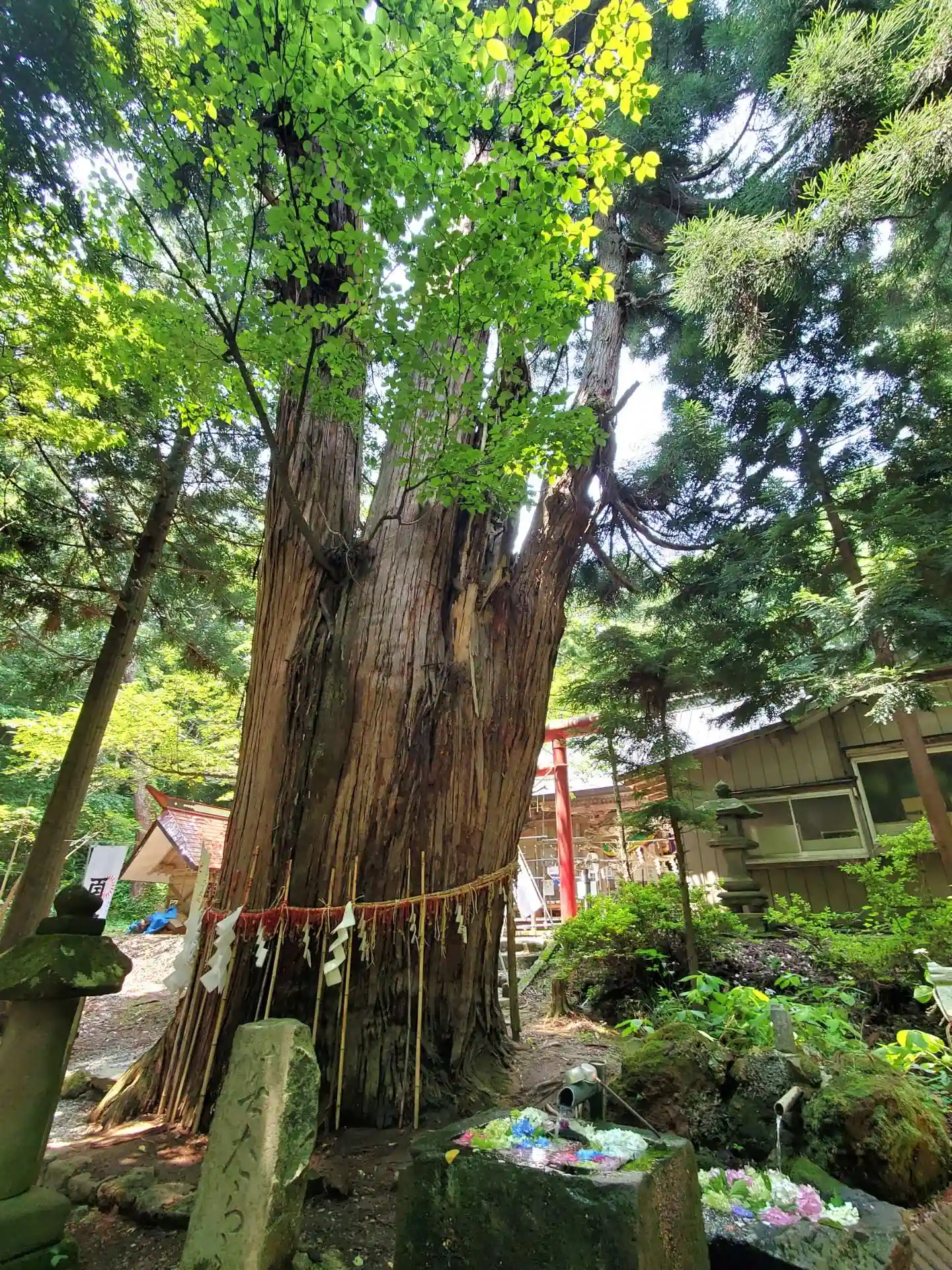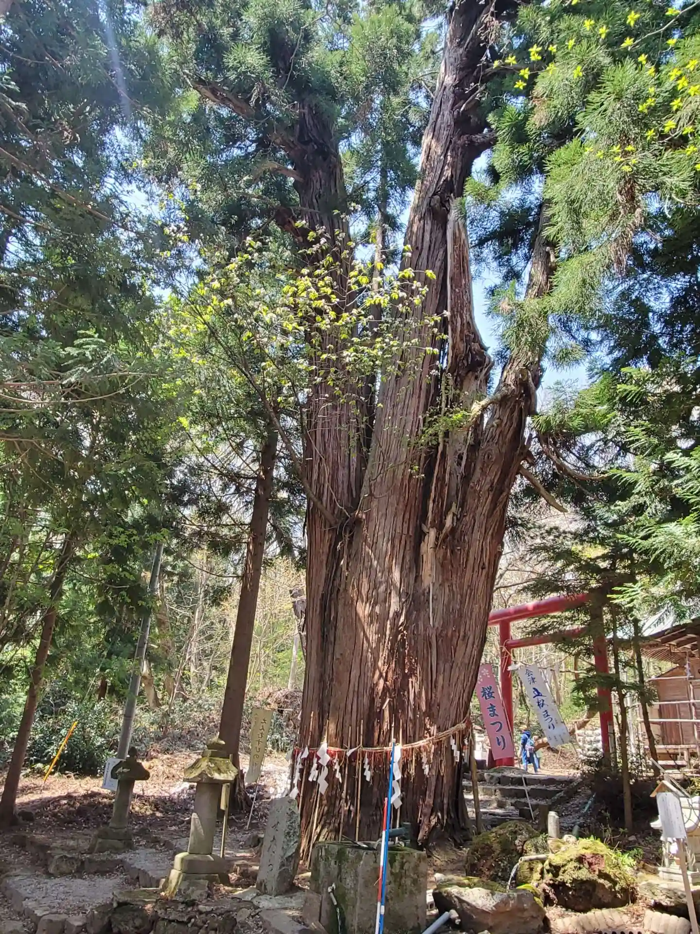御神木の鳥居杉には山桜が根付く不思議な現象‼️