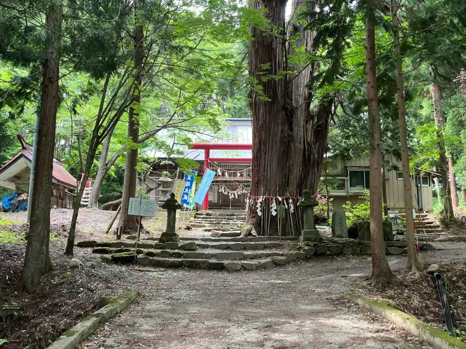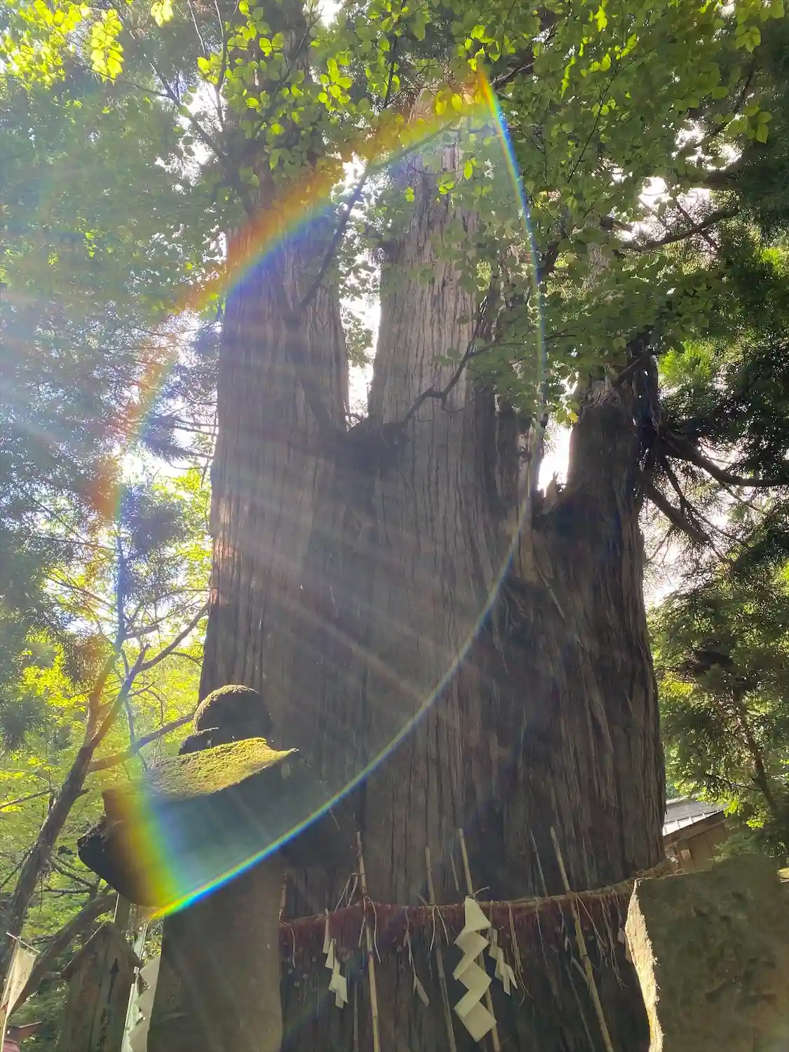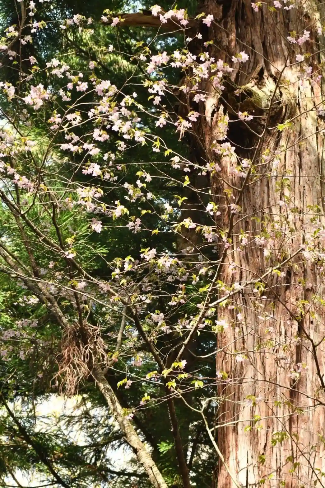 御神木の鳥居杉には山桜が根付く不思議な現象‼️