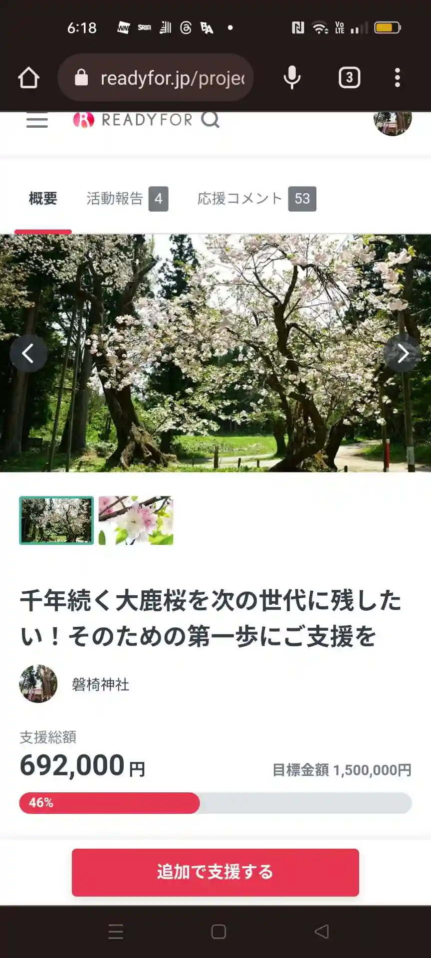 大鹿桜を樹勢回復クラウドファンディング