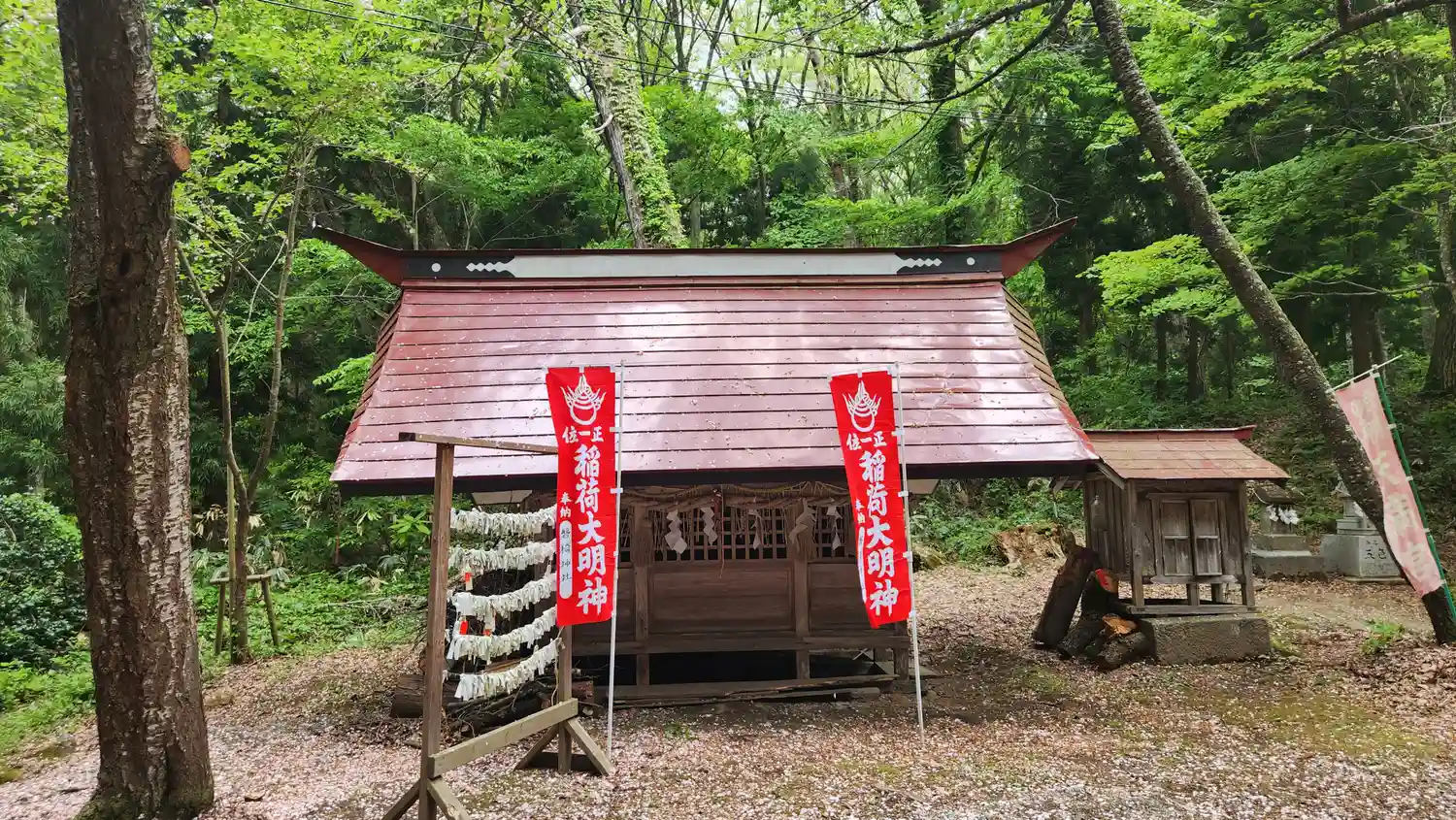 大鹿桜の傍らに鎮座する