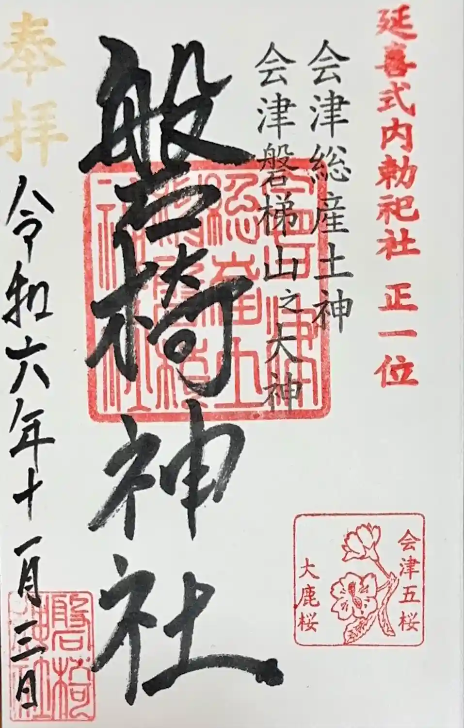 会津松平家初代藩主 保科正之が信仰した延喜式内勅祀社正一位、会津総産土神の社です。