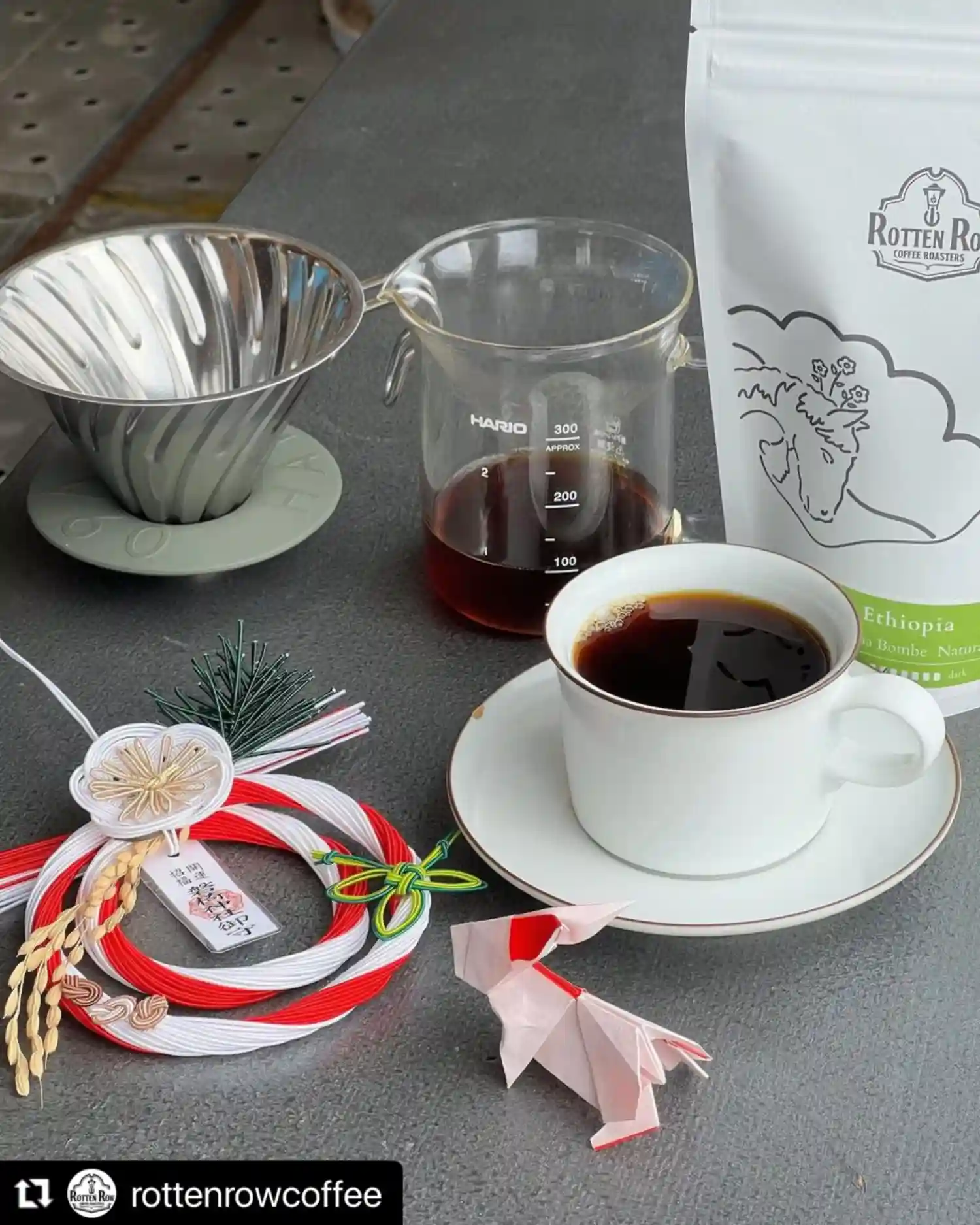 中央の和ではないお正月の飾りがおしゃれです。