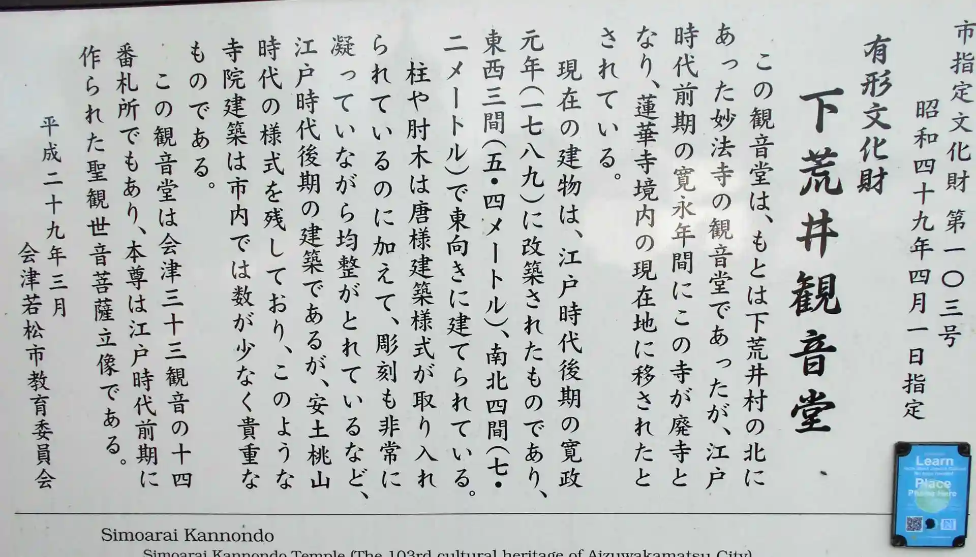 会津三十三観音巡り 14番札所の蓮華寺 下荒井観音に行ってきました。