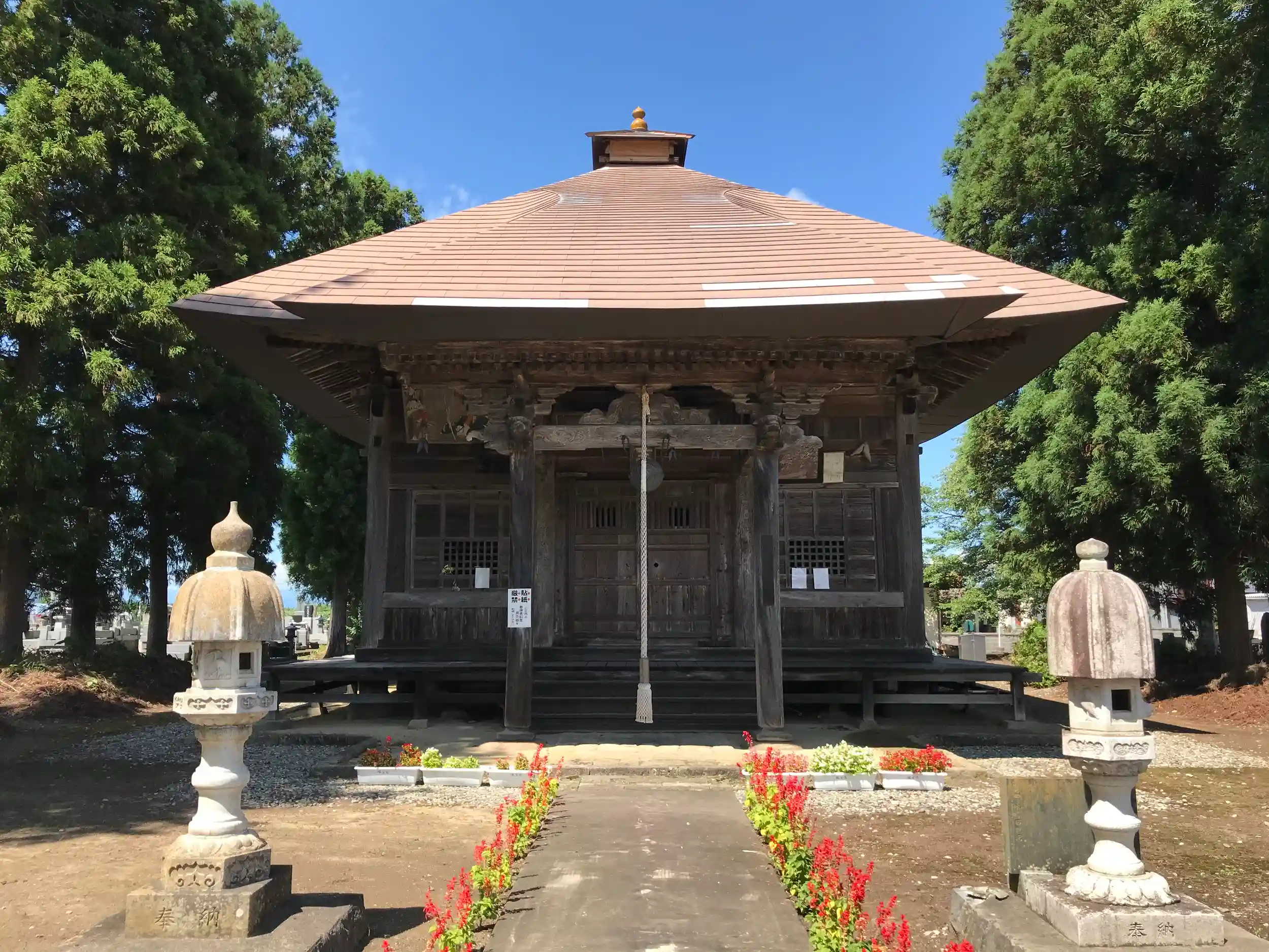 建立時期を示す棟札等は無いが、1997年の解体修理の際に発見された巡礼札が発見され1446年以前の建築であると推定される。重文。