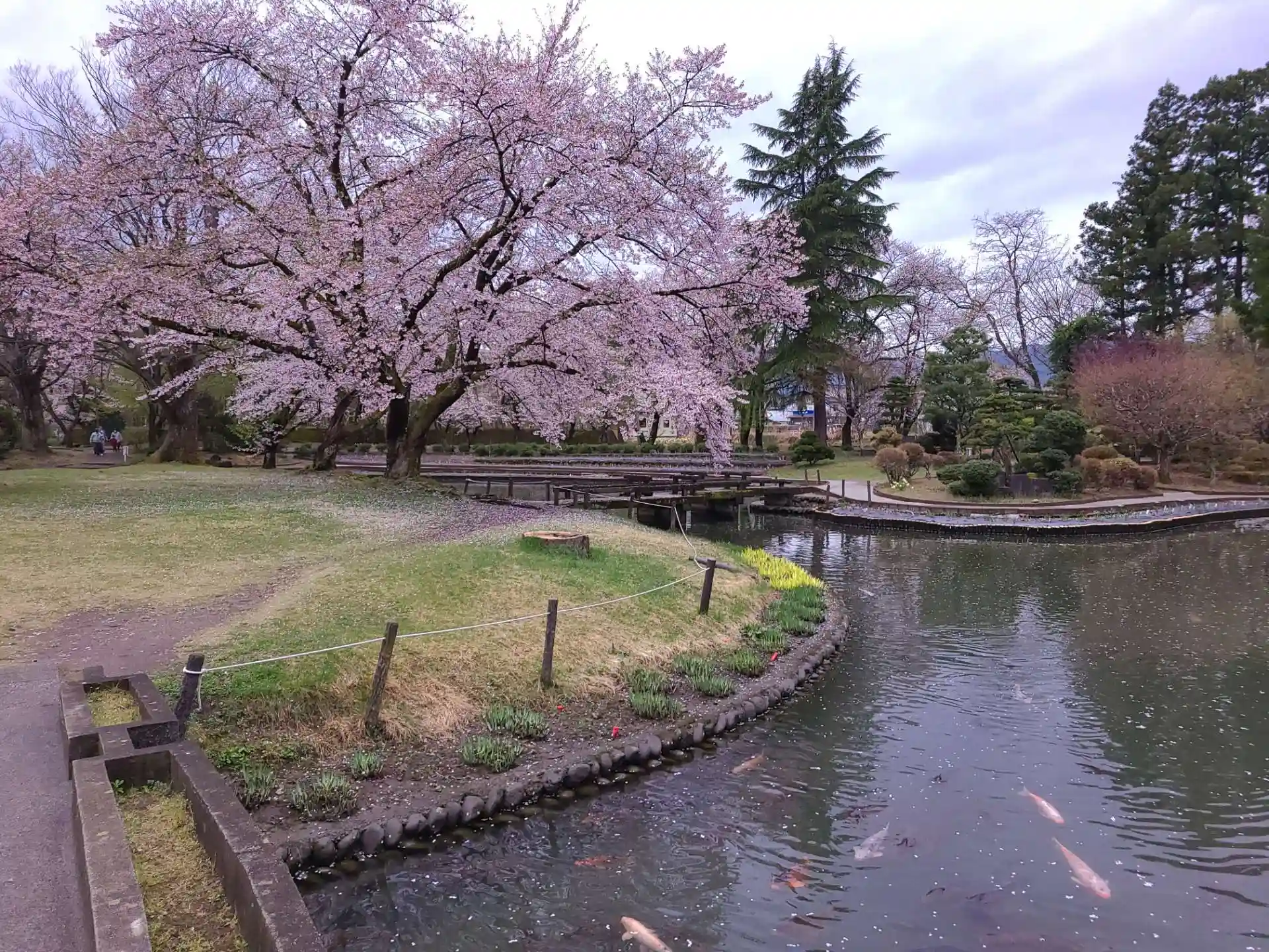桜が見頃になっており、あやめ苑の桜は見事でした。