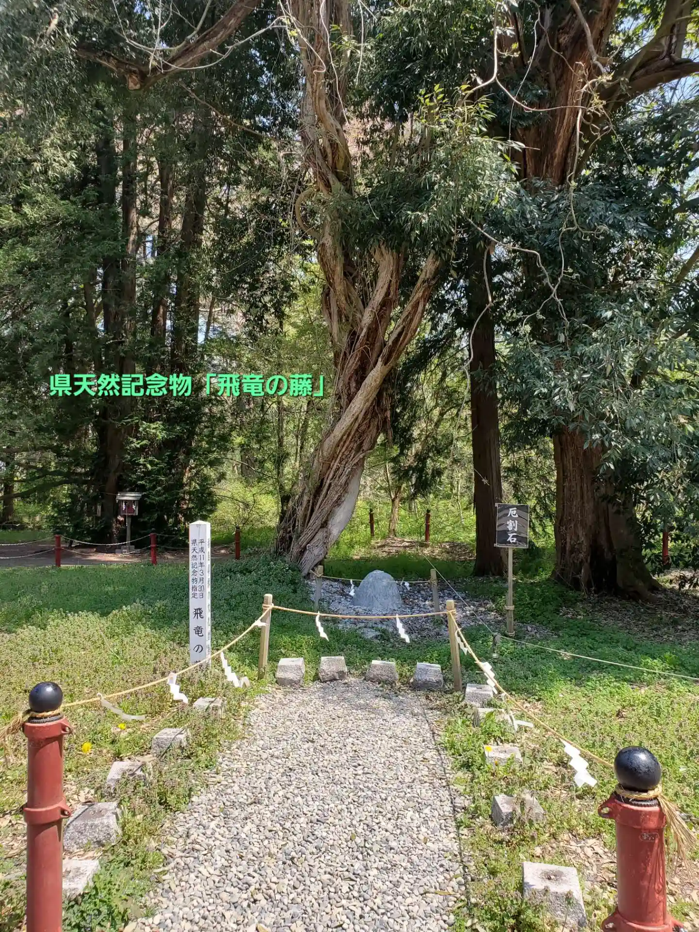 神社の御神木で“会津五桜”の一つである「薄墨桜🌸」や県天然記念物「飛竜の藤」、色とりどりの花菖蒲が咲き誇る外苑「あやめ苑」があります。