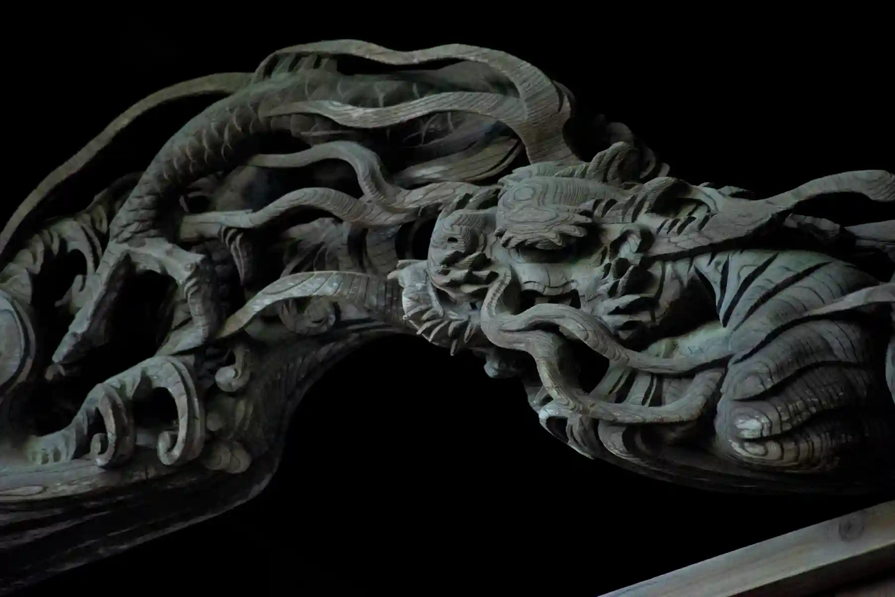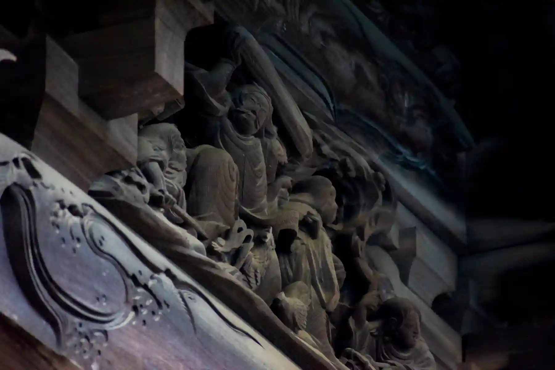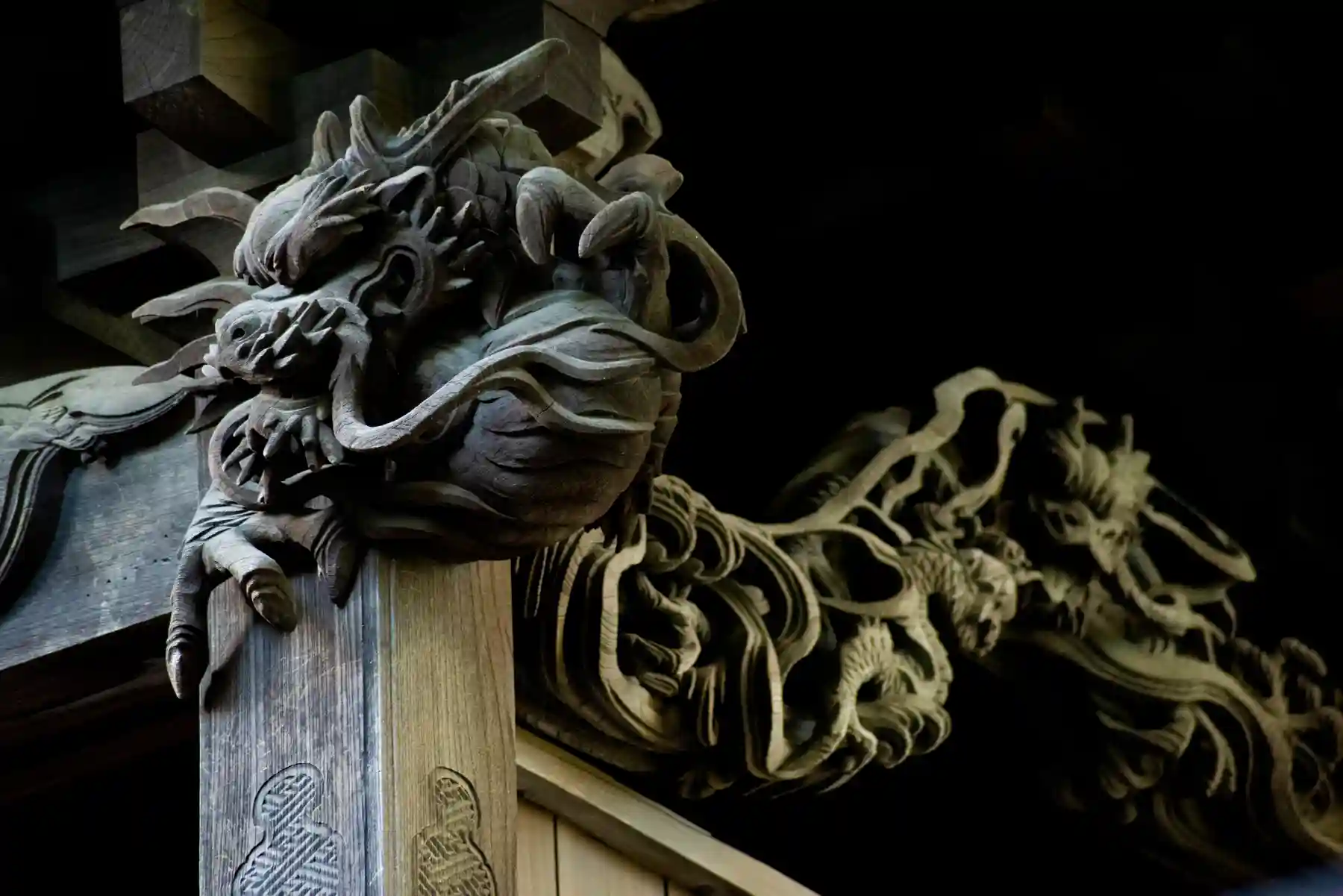 こちらの拝殿は朱に彩られ、大変神々しく映え素敵でした。本殿に回ってみると素晴らしい彫刻に出会うことができました。特に海老虹梁の龍はとても精緻で迫力のあるものでした。必見です!