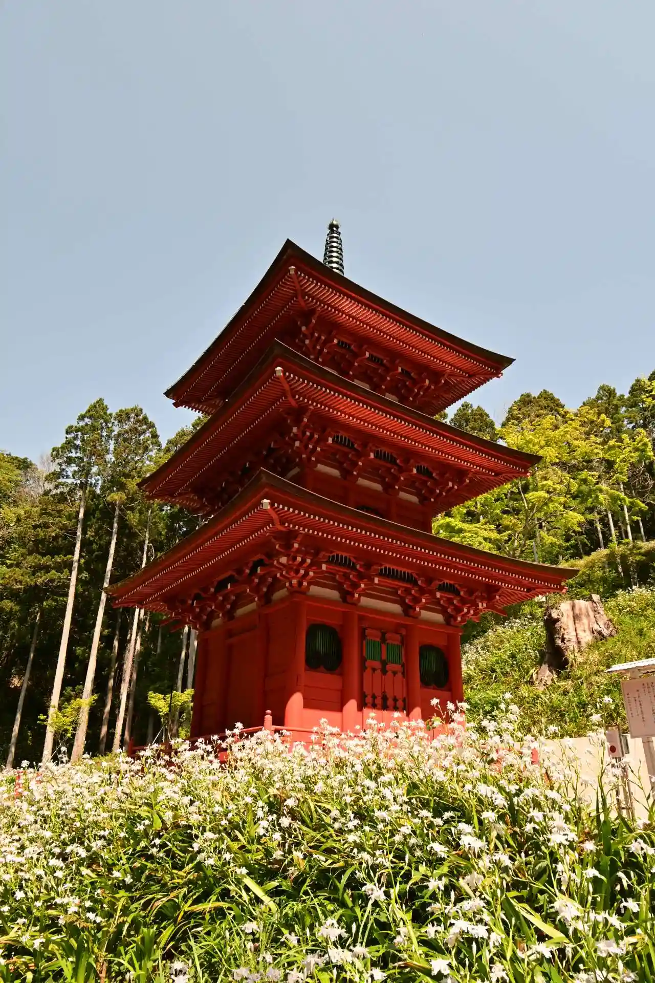 本堂左手の細道を登って行くと歴史を感じる三重塔と観音堂があります✨