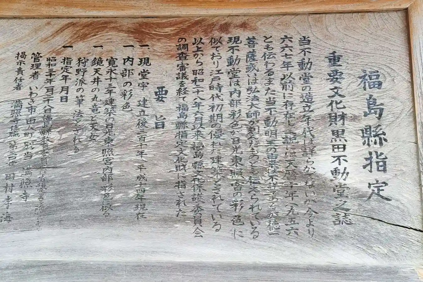 黒田不動堂の由緒書。