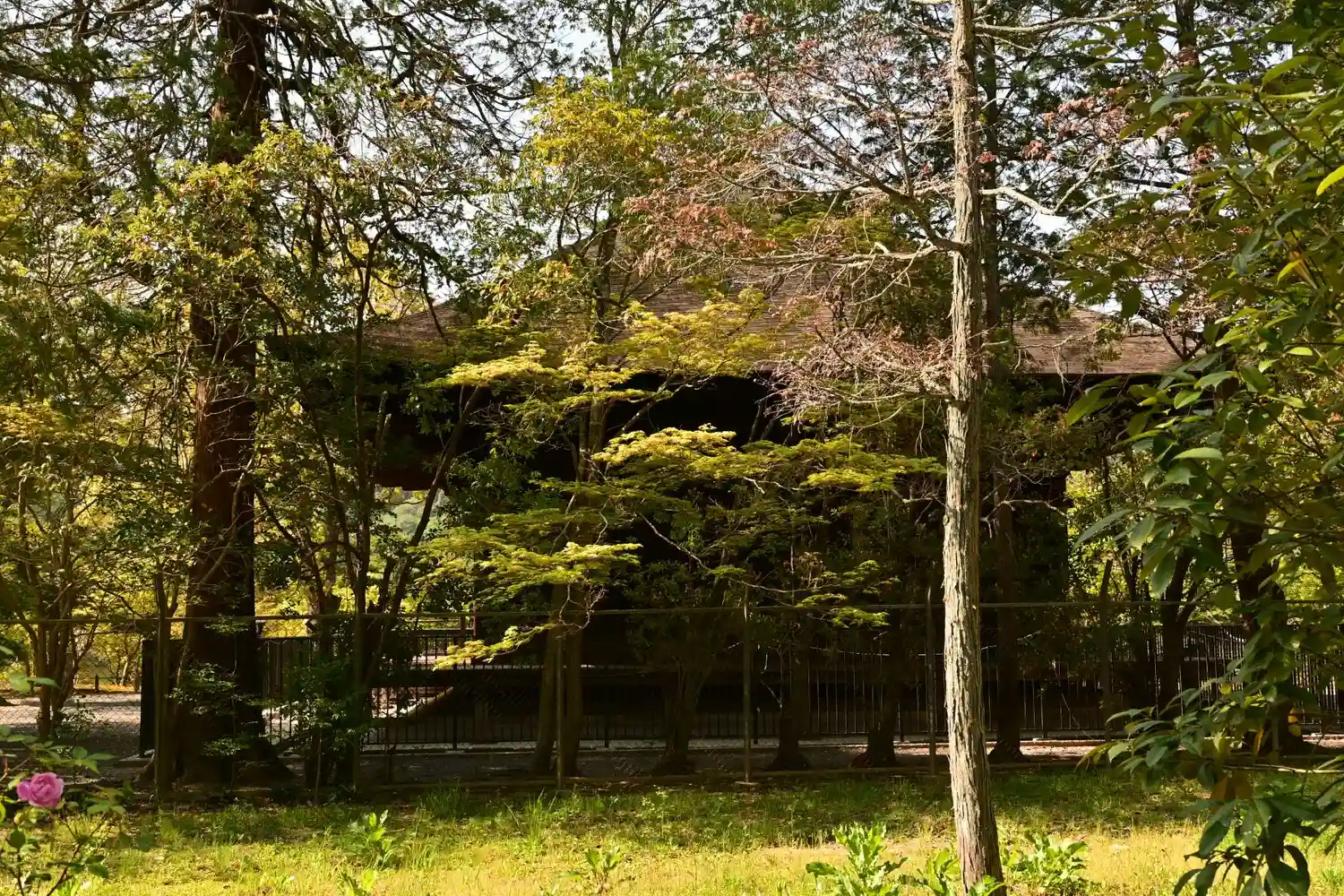 屋根は、杮葺(こけらぶ)きの一種で、栩葺(とちぶ)きと呼ばれる様式だそうです。