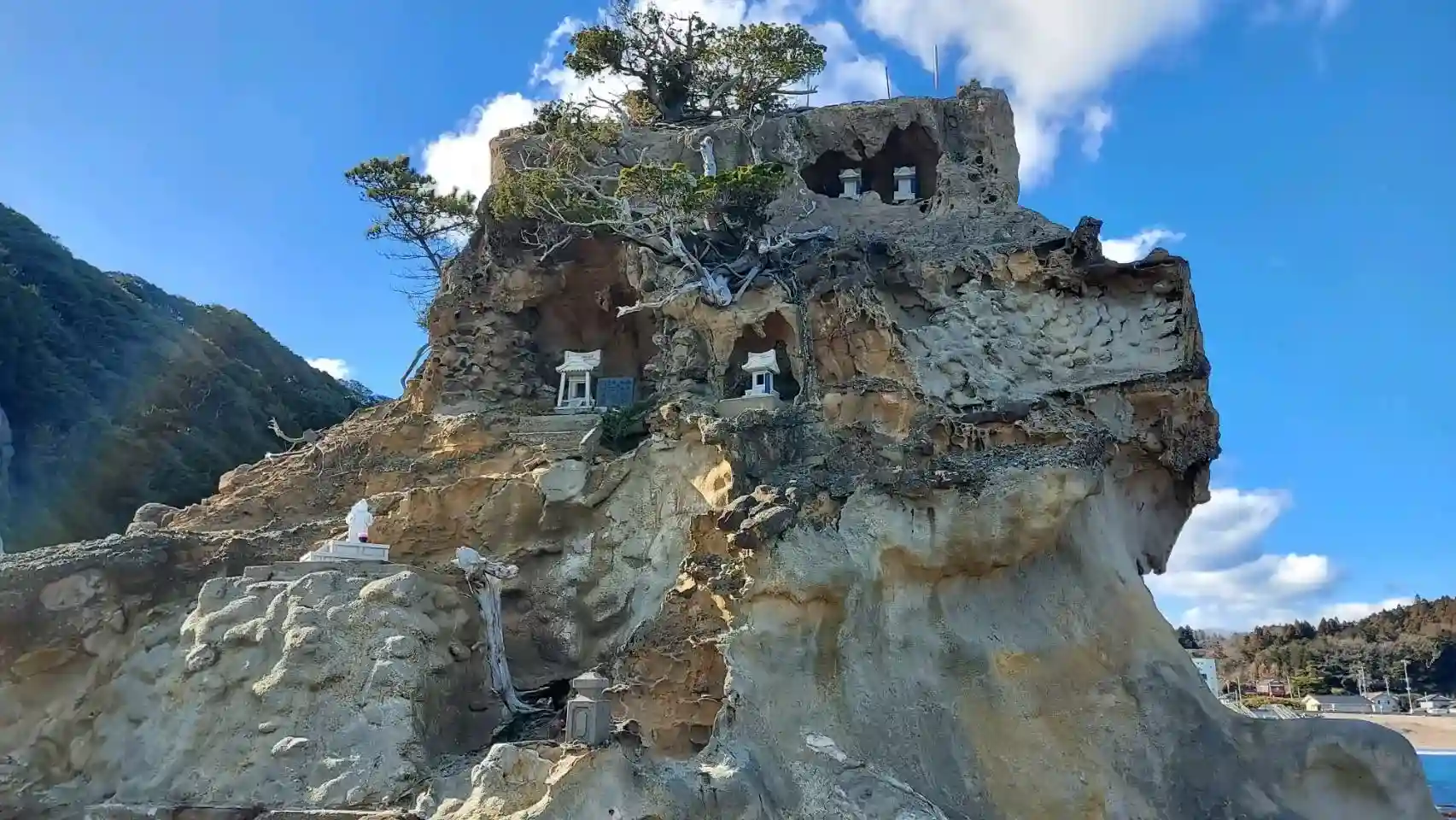 合わせて巡るスポットに弁天島と朱塗りの橋があって晴れてると海の上の鳥居⛩️が映ます