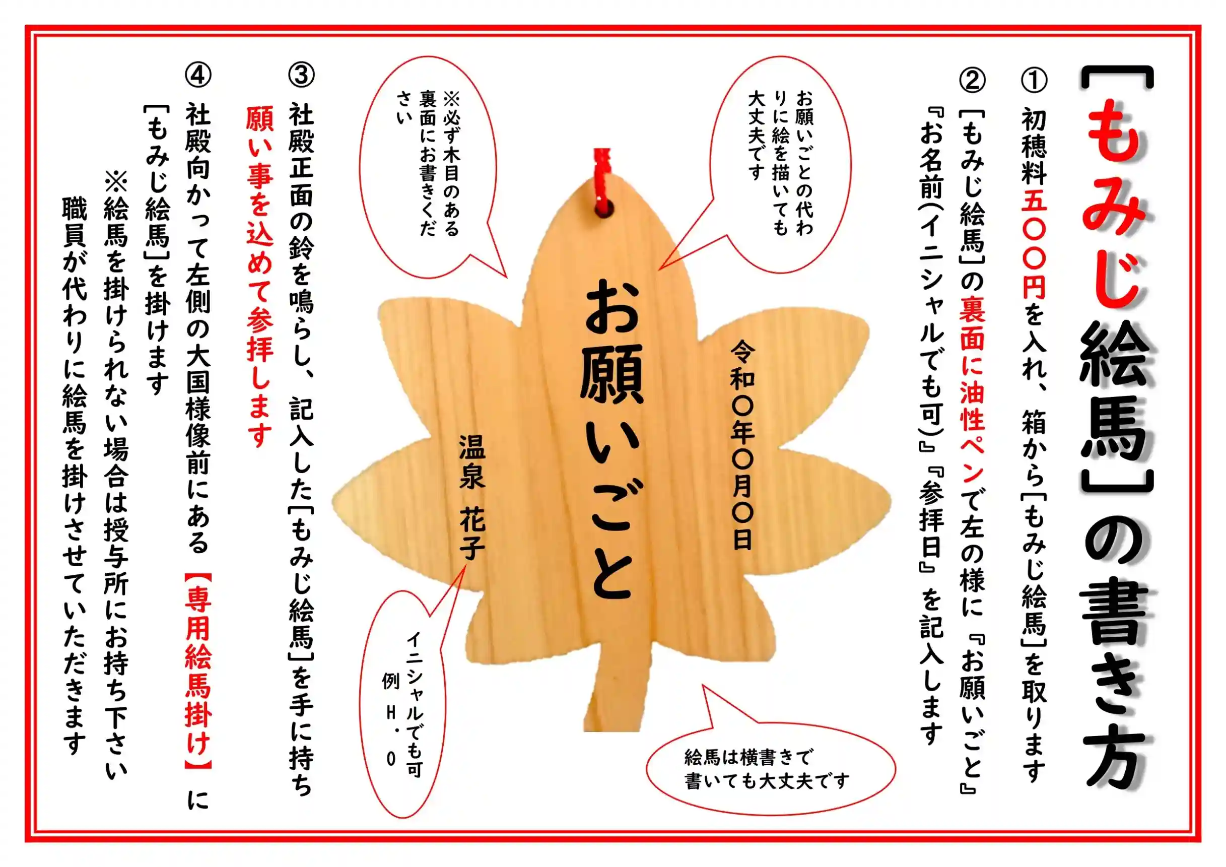 『もみじ絵馬』頒布のご案内 初穂料1枚500円