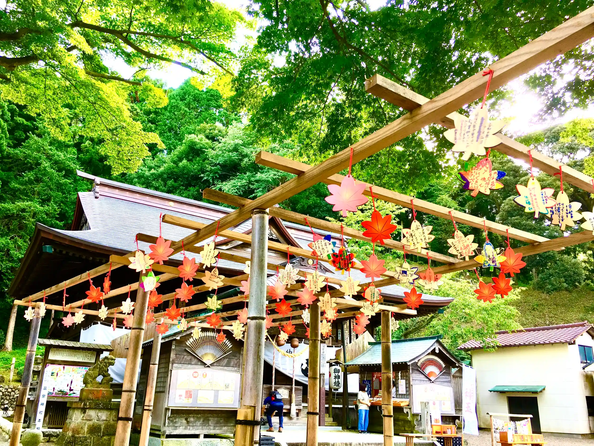温泉神社の秋の紅葉を一層引き立てる、「もみじ」の形をした絵馬を本年より頒布致します。