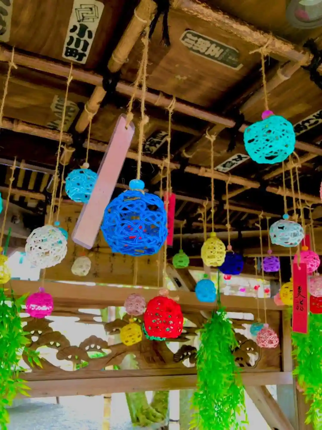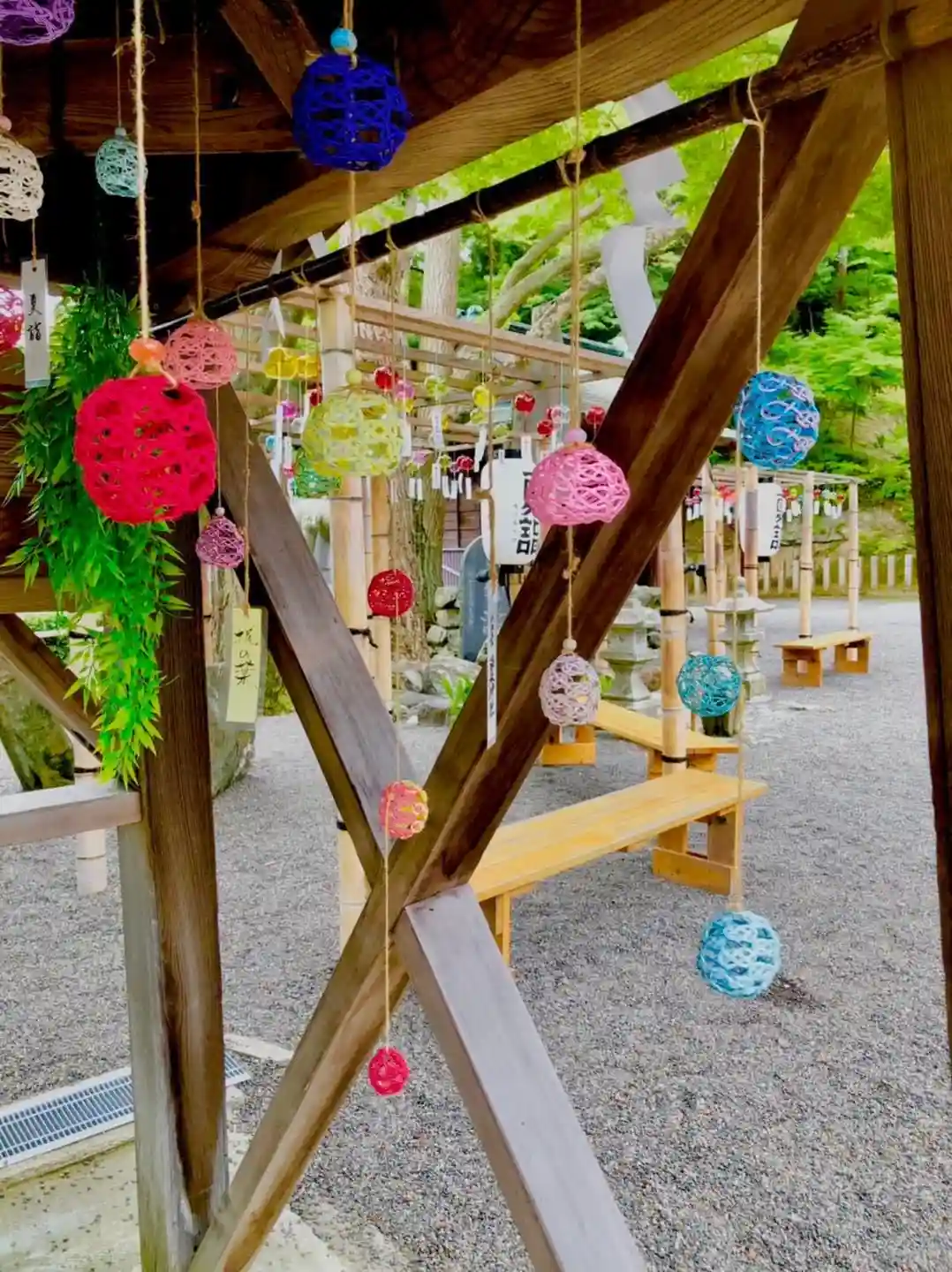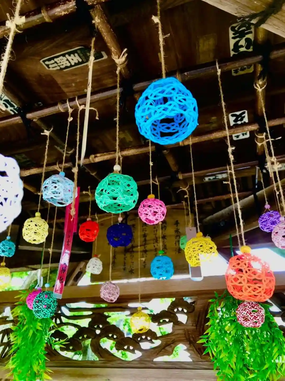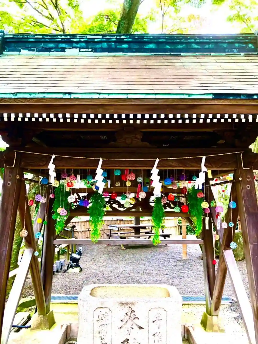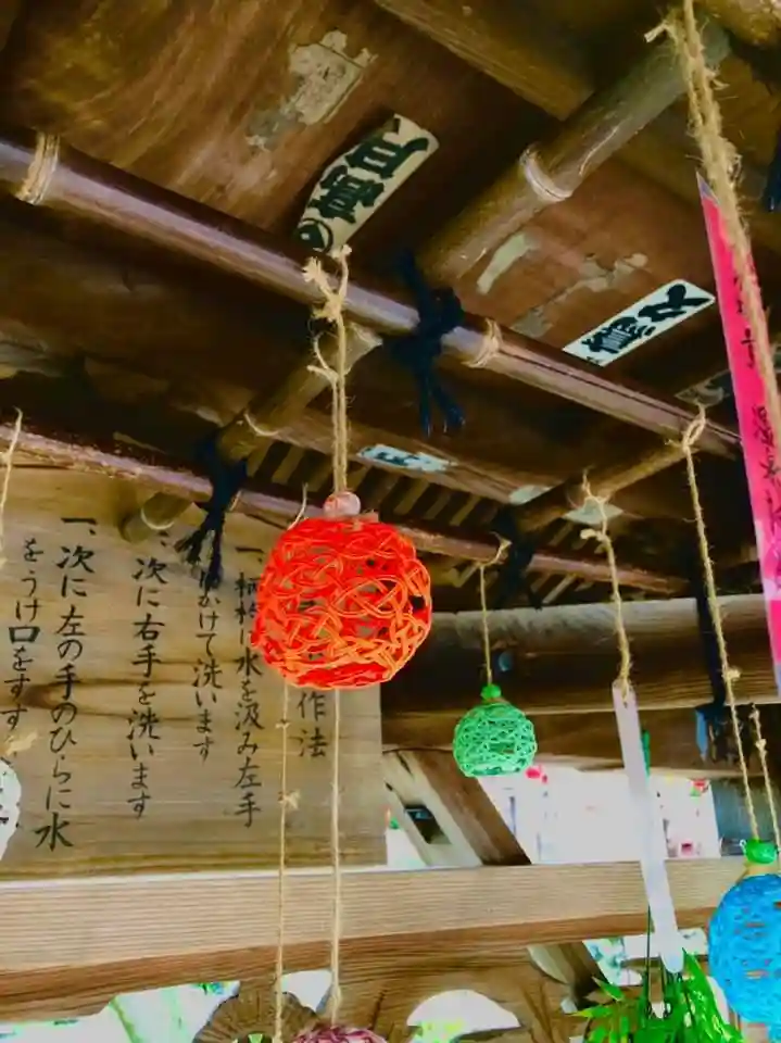 手水舎の飾りを、てるてる坊主から水引風鈴にバトンタッチしました‼︎