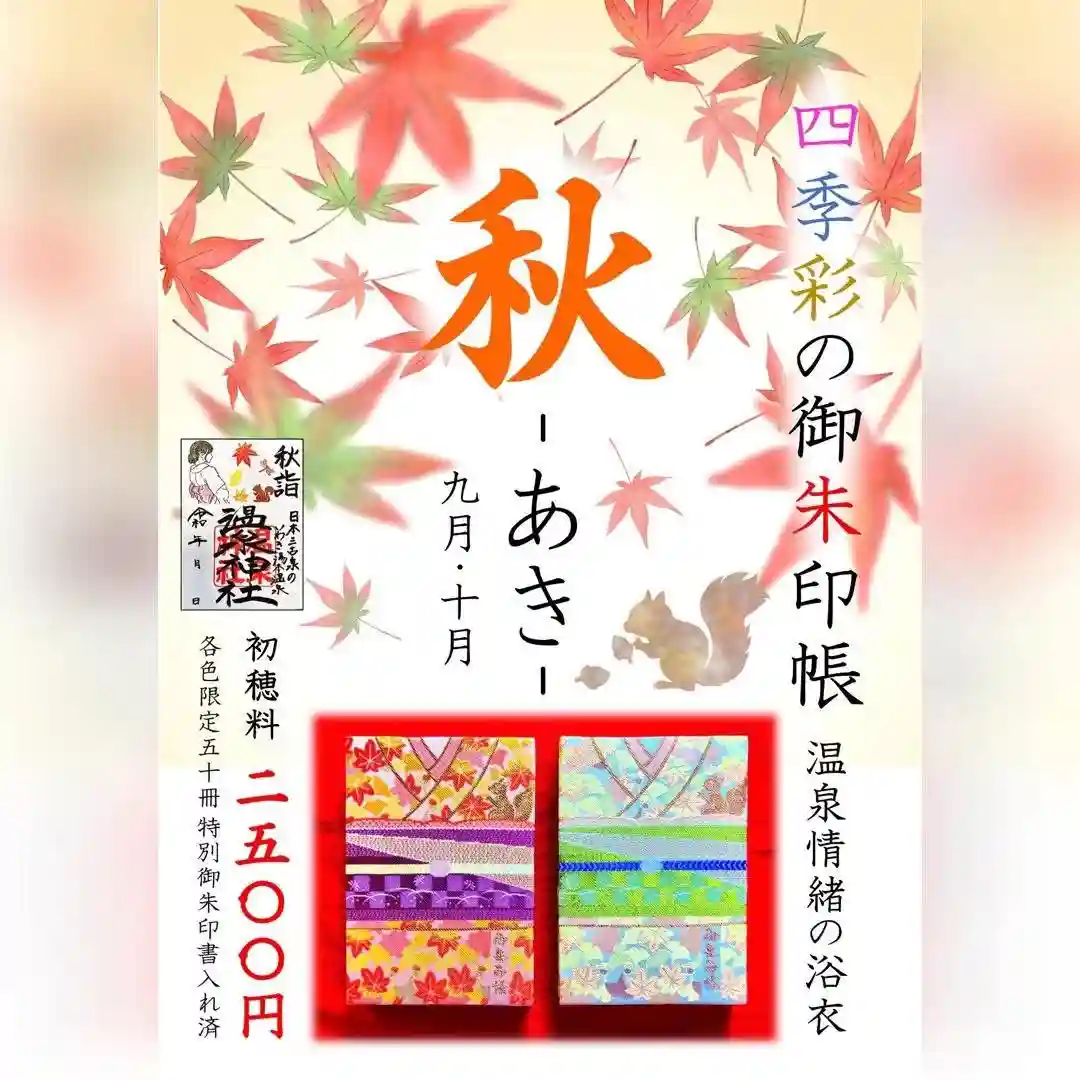 温泉神社では、9月8日(月)より秋限定の御朱印帳を頒布いたします♫