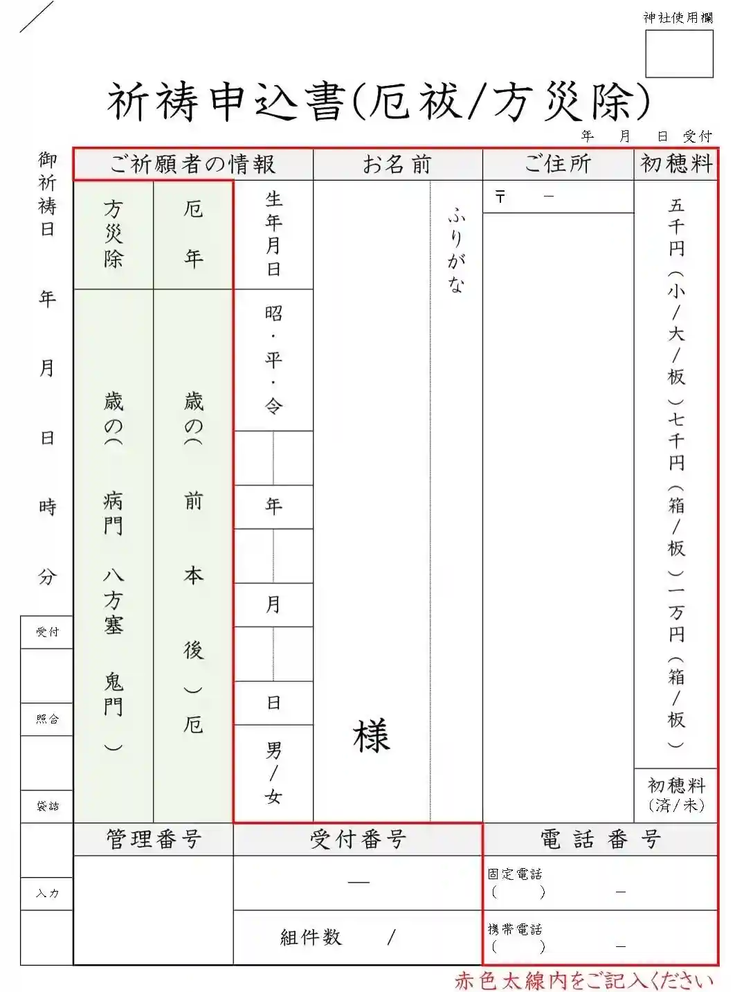 ④初穂料(5000円/7000円/10000円)
