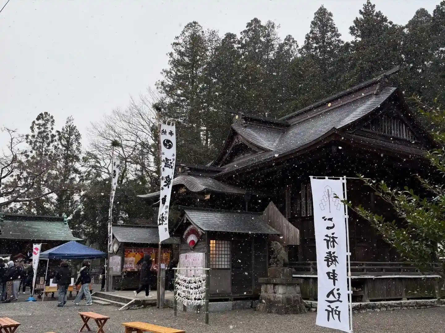 #いわき湯本 #温泉神社 #招福餅 #雪が舞う #大国さま