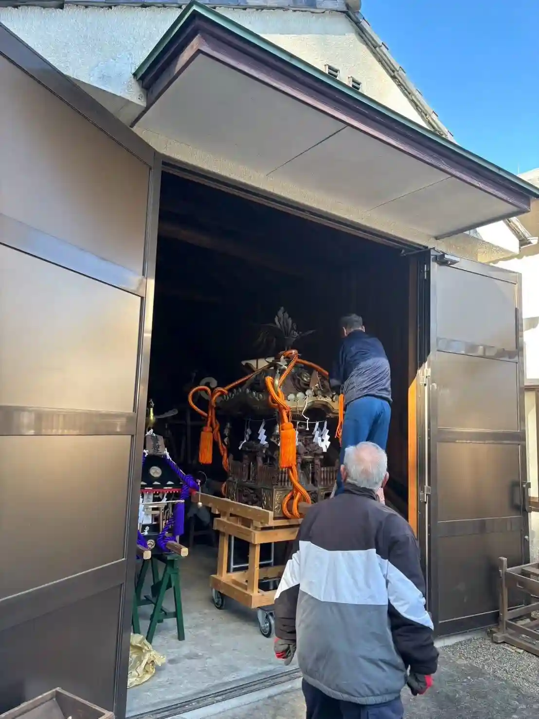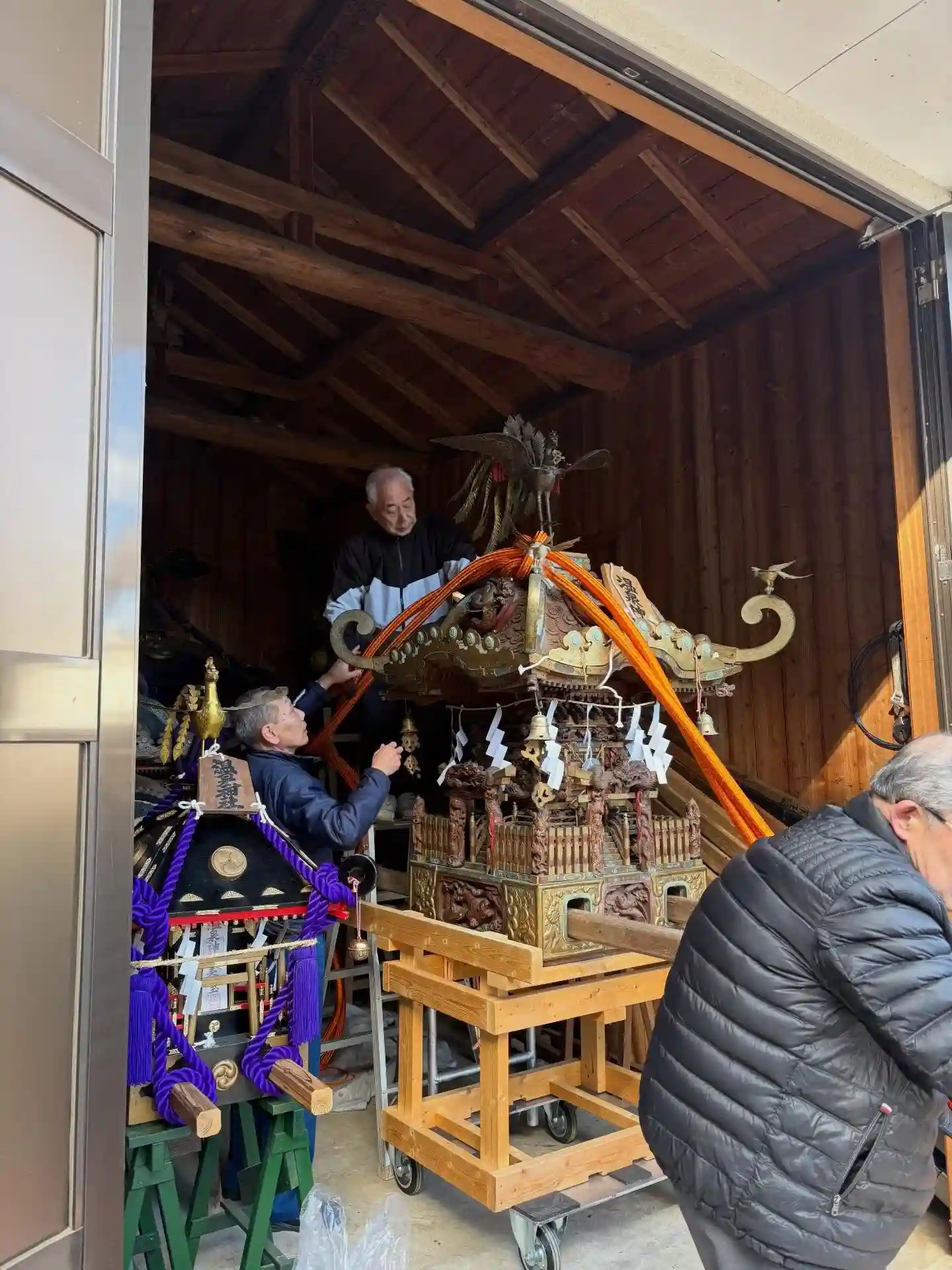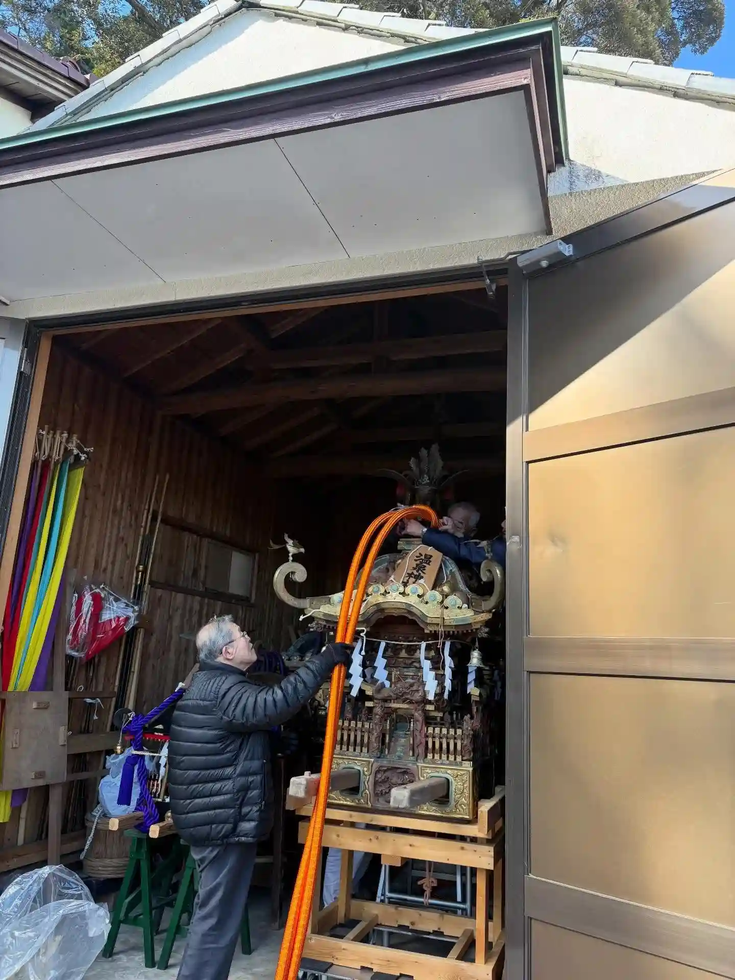 当社のお神輿に新しい飾り紐を取り付けて下さいました!