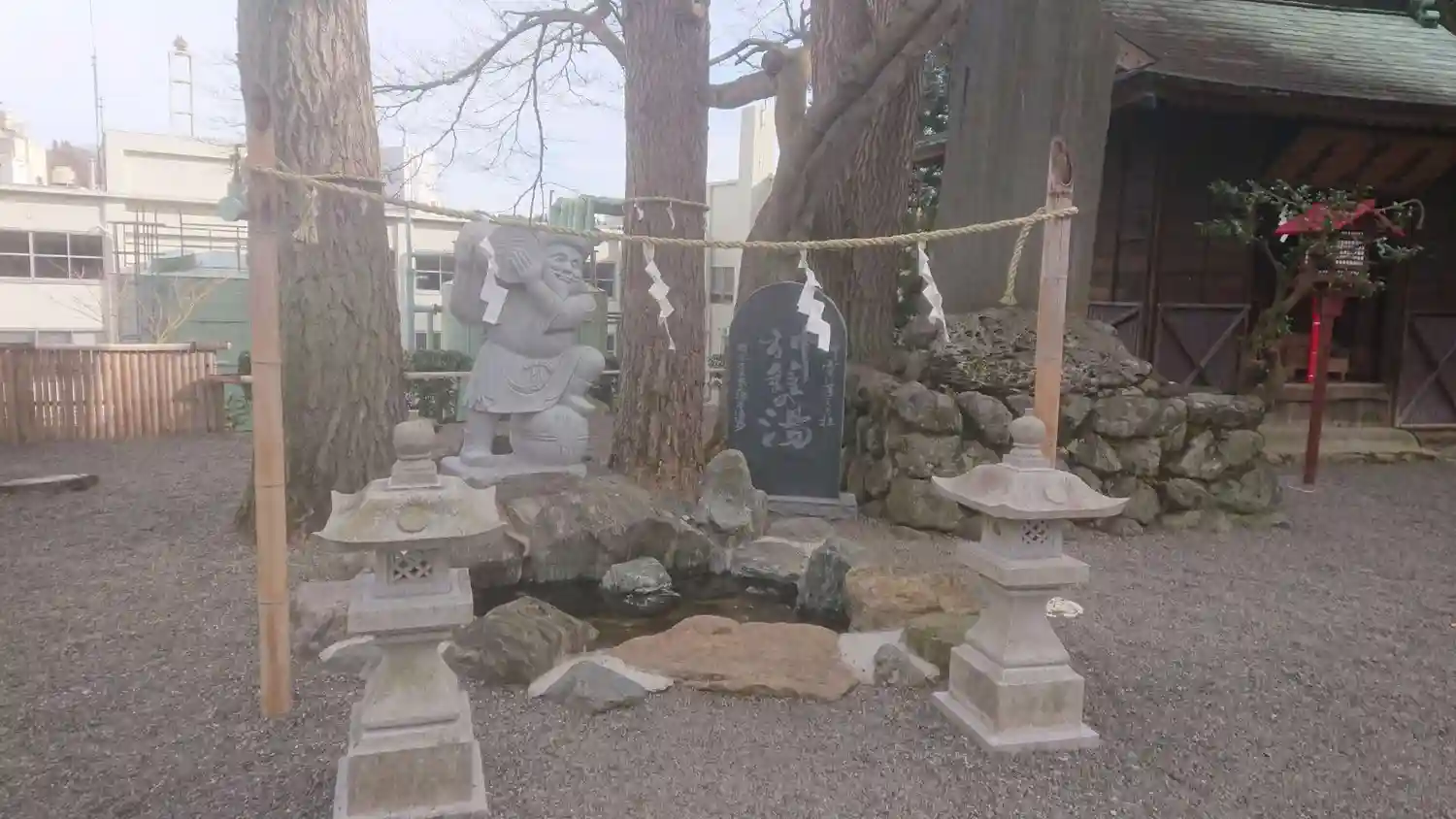 御手水の代わりに温泉が湧いている池で手…