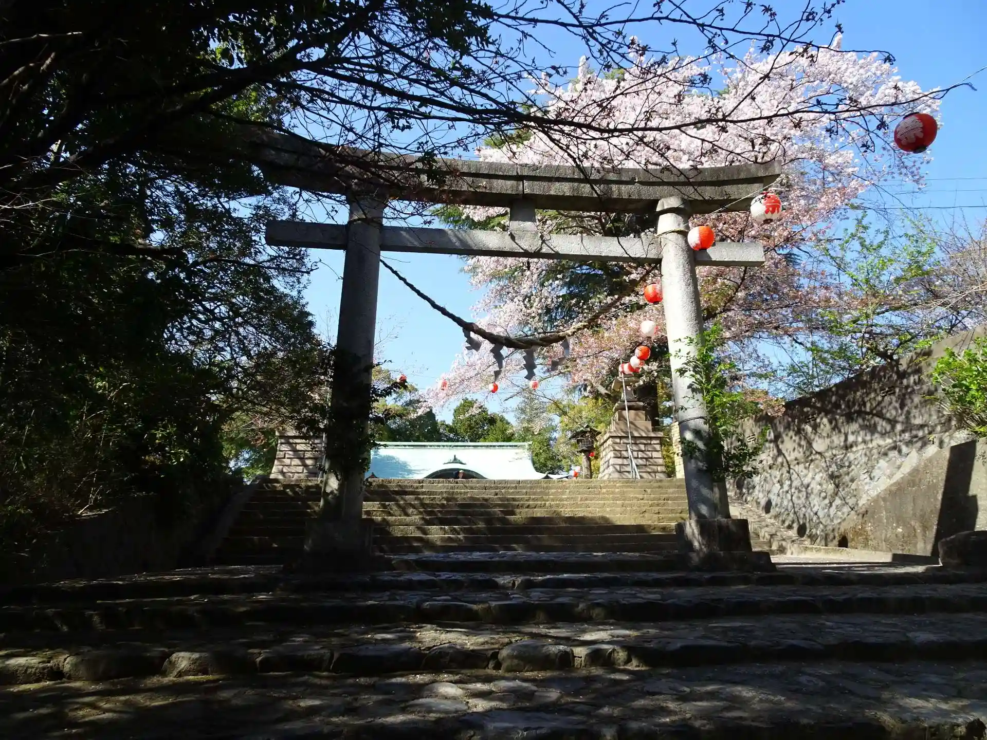 出張の折に参拝させて頂きました。境内の桜がまだ見ごろを保っており、また、ちょうど例大祭のタイミングで、祭事がおわり氏子さんたちが出来上がった状態のところに参拝させていただきました。