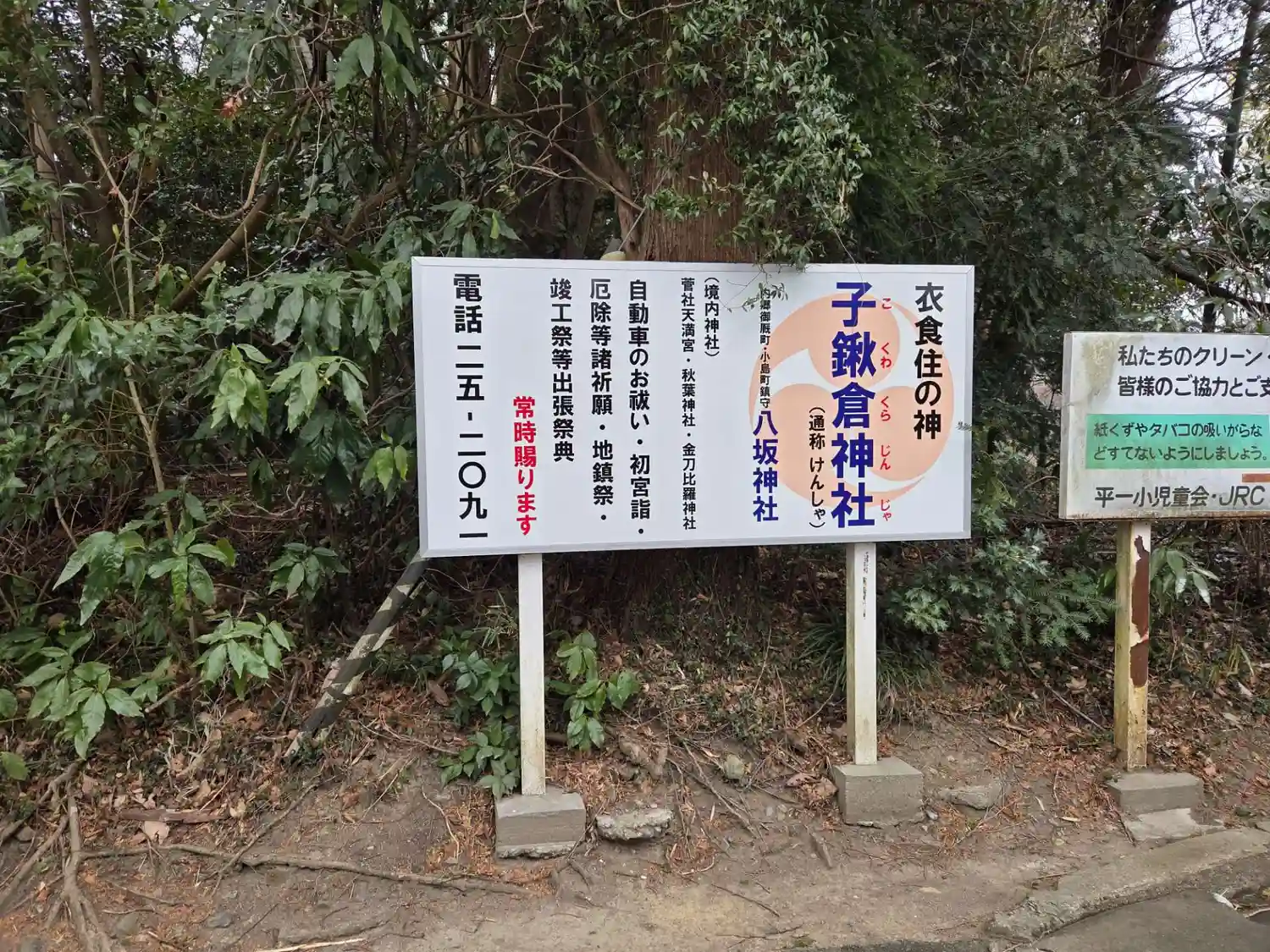 神社裏手看板