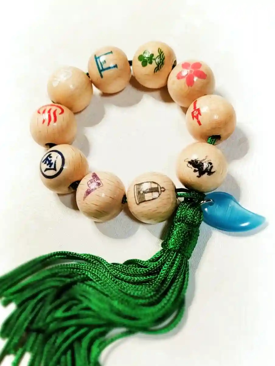 神玉がすべてそろい、神紐に通した写真です。