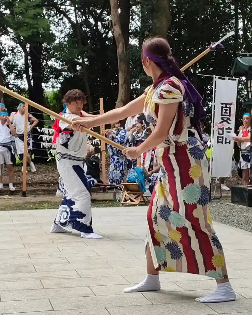 午前中には迫力ある伝統芸能「滝尻棒ささら」の奉納演武。