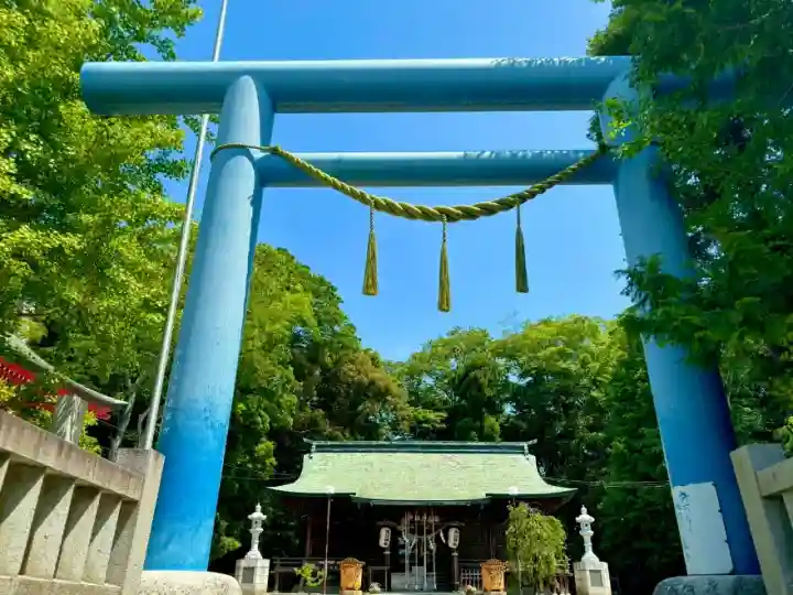 青い鳥居が爽やかで