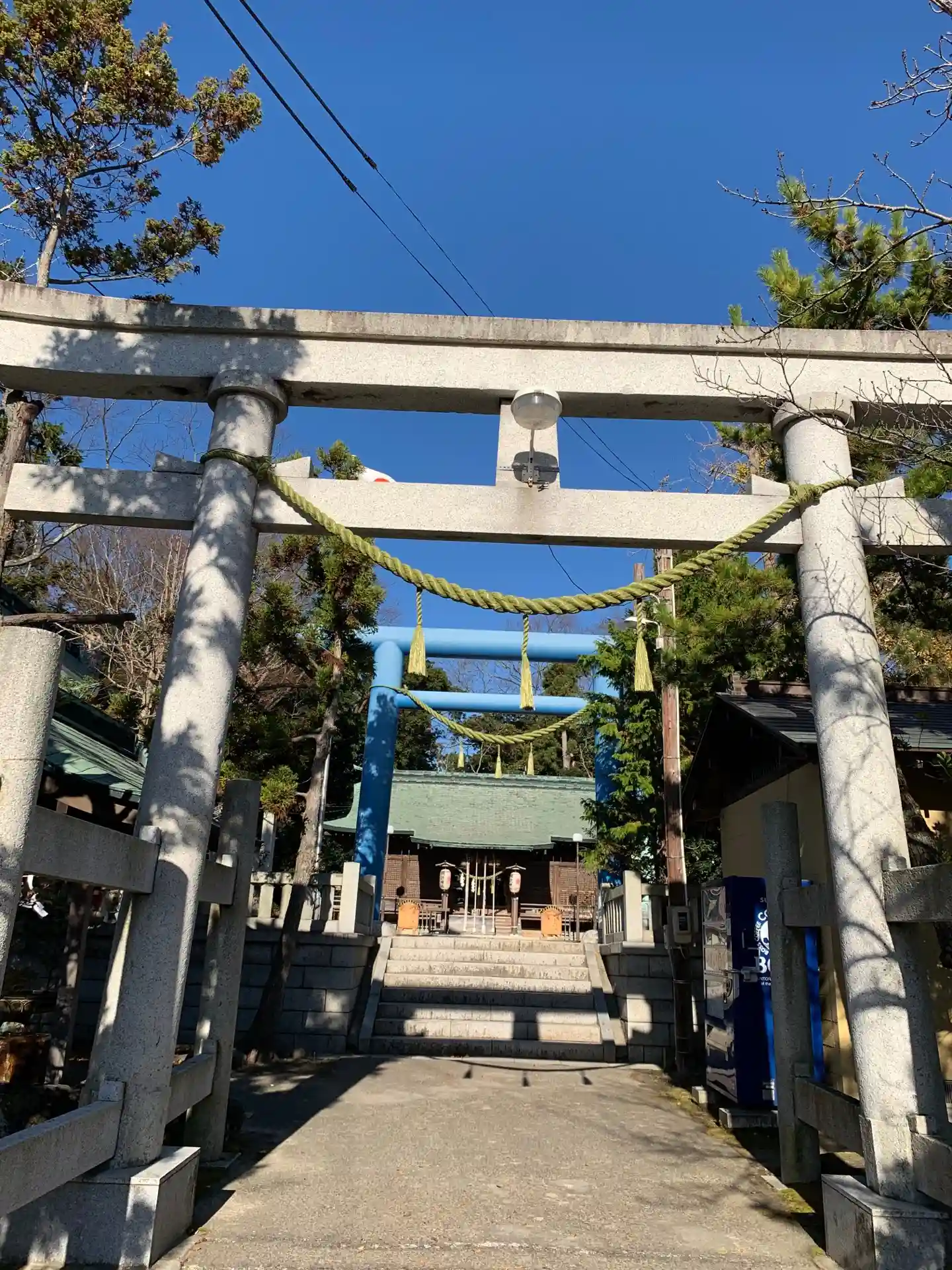 青い鳥居が珍しく、カッコイイ。