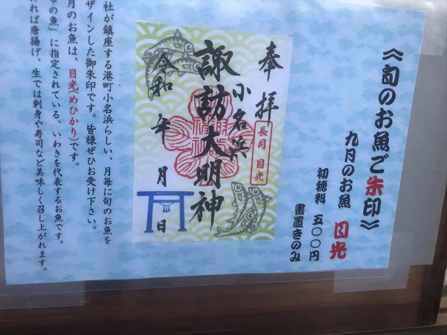 御朱印は500円。9月限定の書置きを頂きました。青い鳥居が目を引きます。長野県諏訪神社から分霊した…