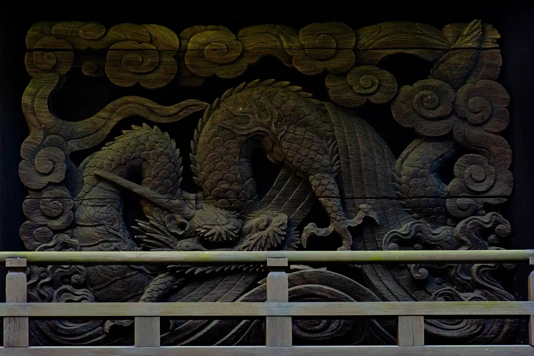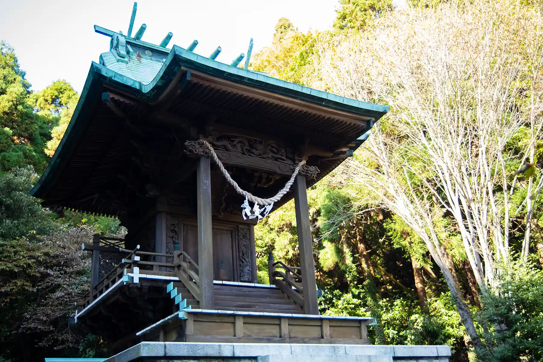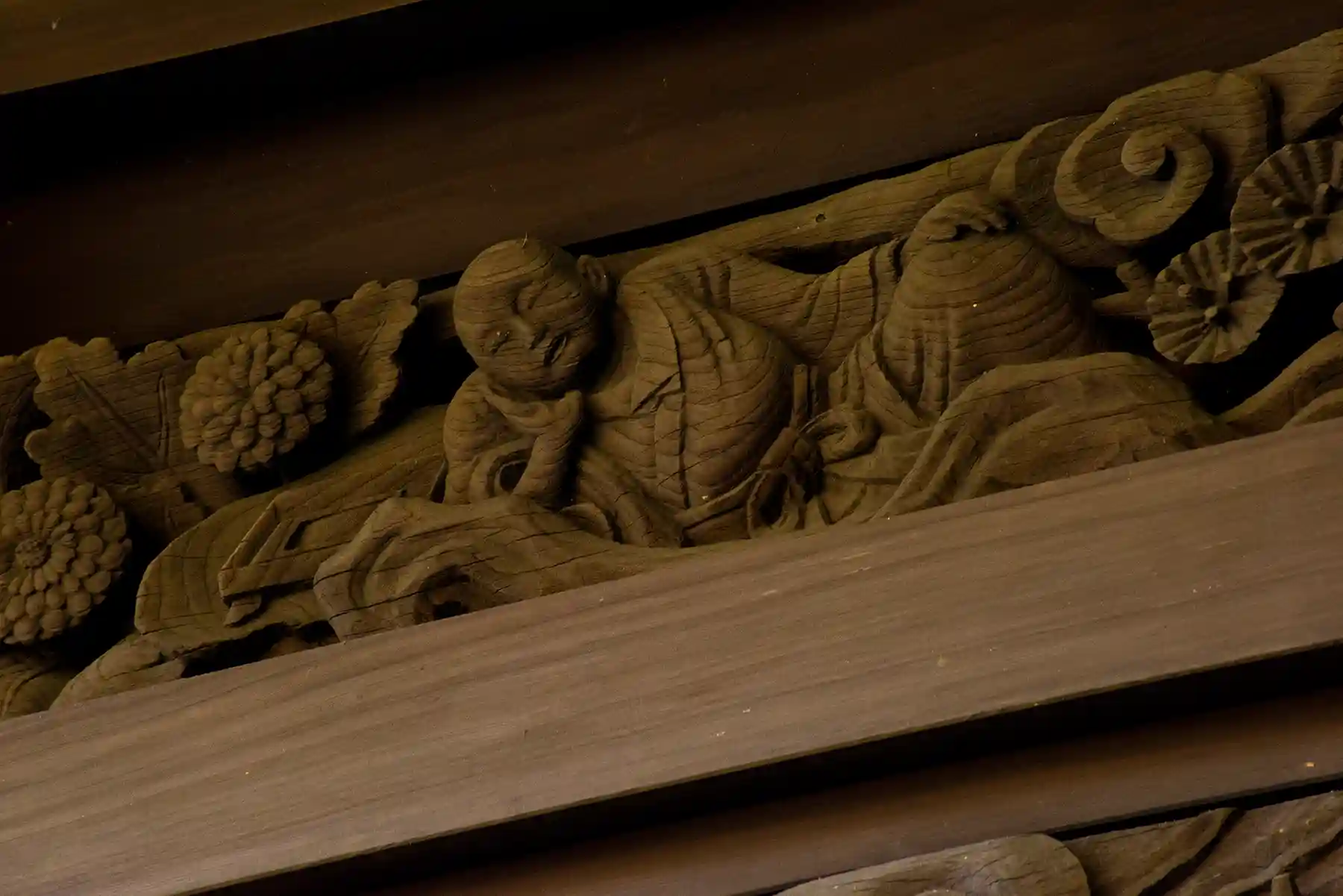 一見、普通の神社に見えますが、本殿に回ってみますと、素晴らしい彫刻に出会えます。透塀などに覆われていないので、間近で堪能することができます。