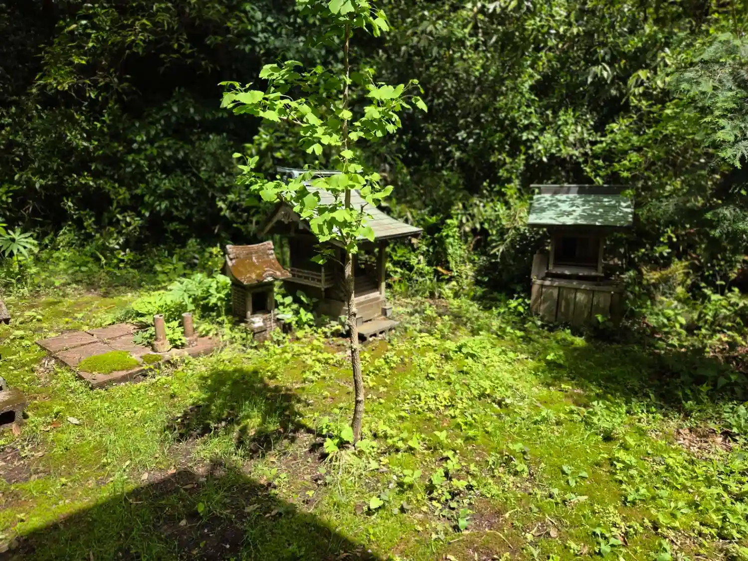 境内社 同じような社が2社並んでおり、その中間に年徳大善神の石標があるので、いずれかが歳地区神社と思われます