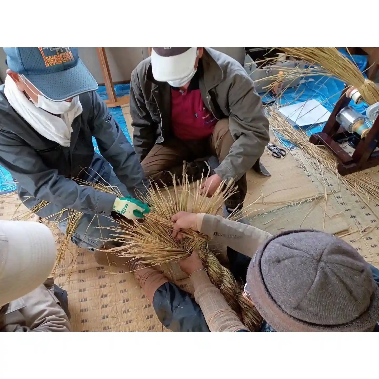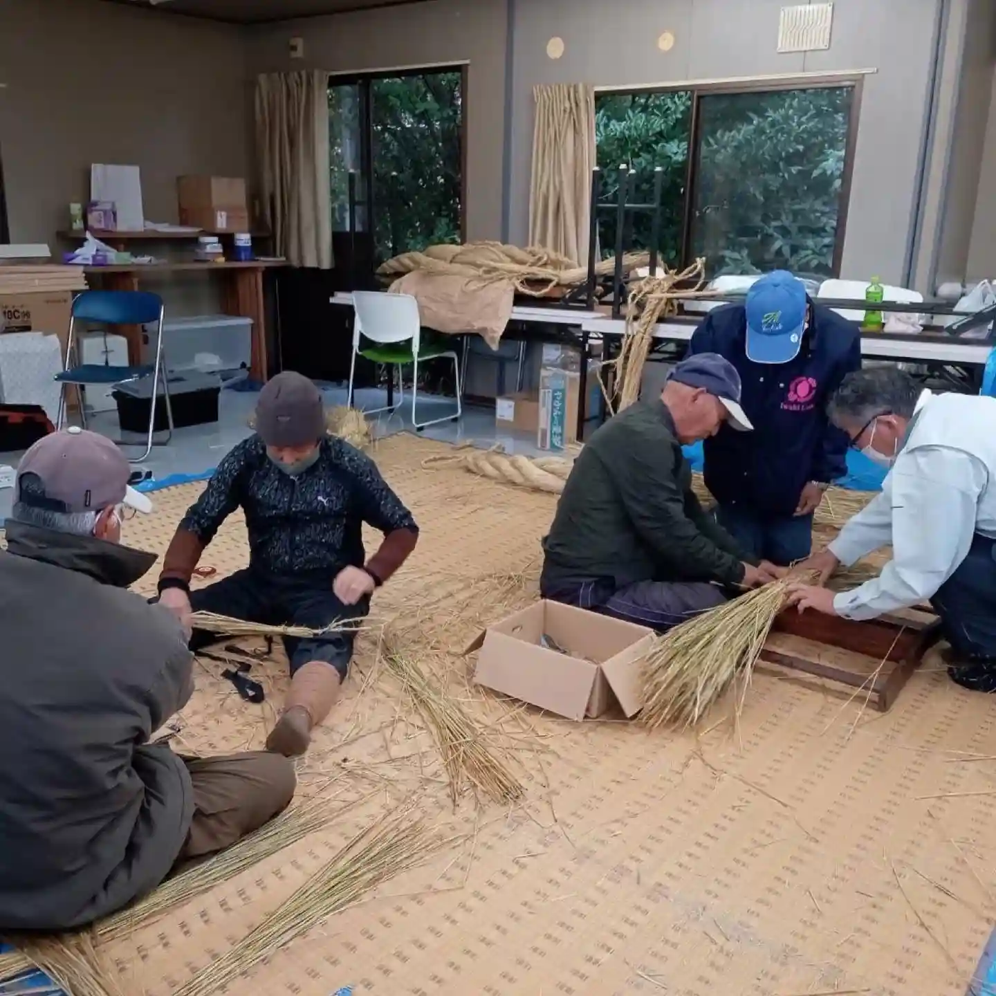 昨日から2日間にわたり、当社役員・総代・氏子の皆様のご奉仕で10本程の注連縄を奉製いただきました。