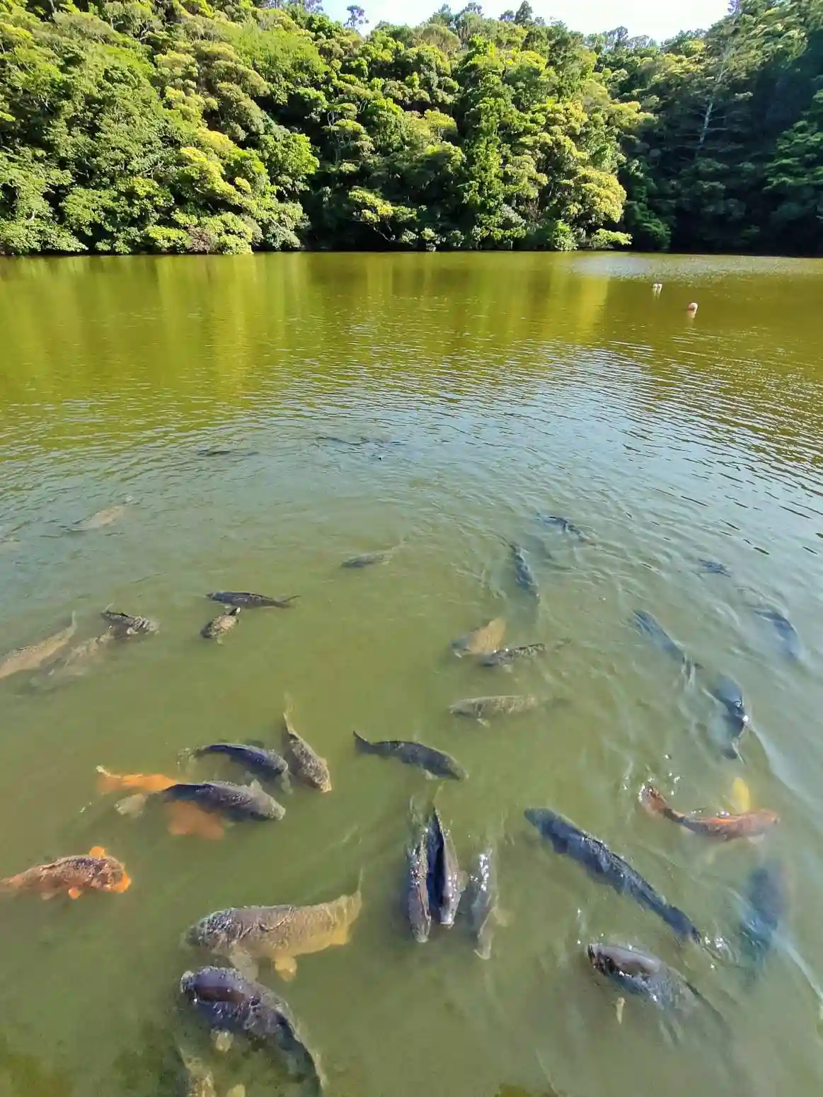 風光明媚で、広い沼には鯉や亀など、豊富な生き物がおり、餌をあげて楽しめます。