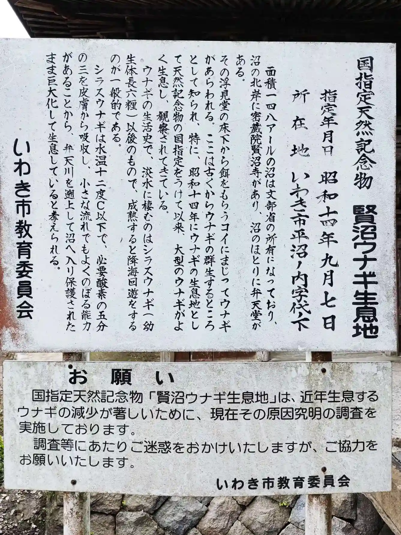 ウナギ生息地の由緒書。