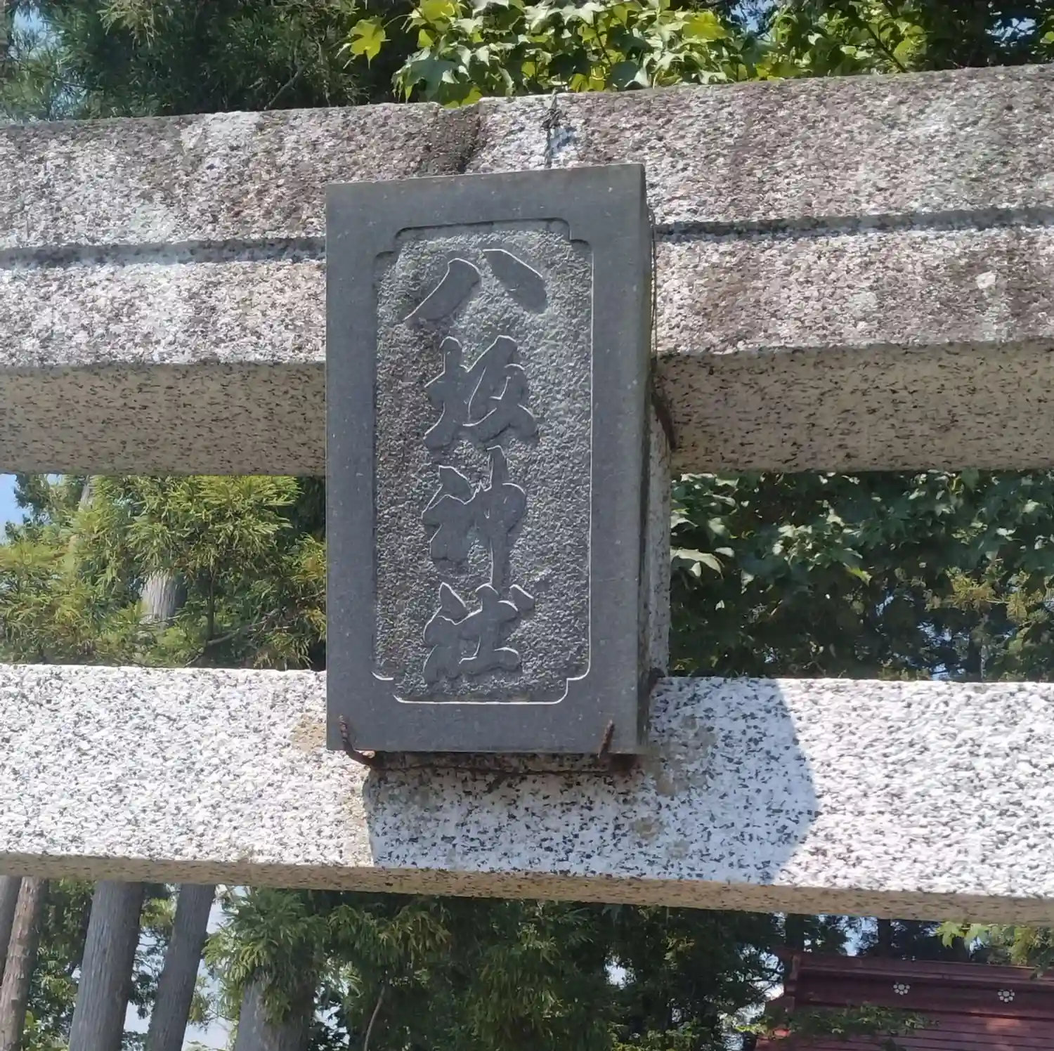 八坂神社 拝殿前上部に掲げてある(八坂神社)の扁額の様子です