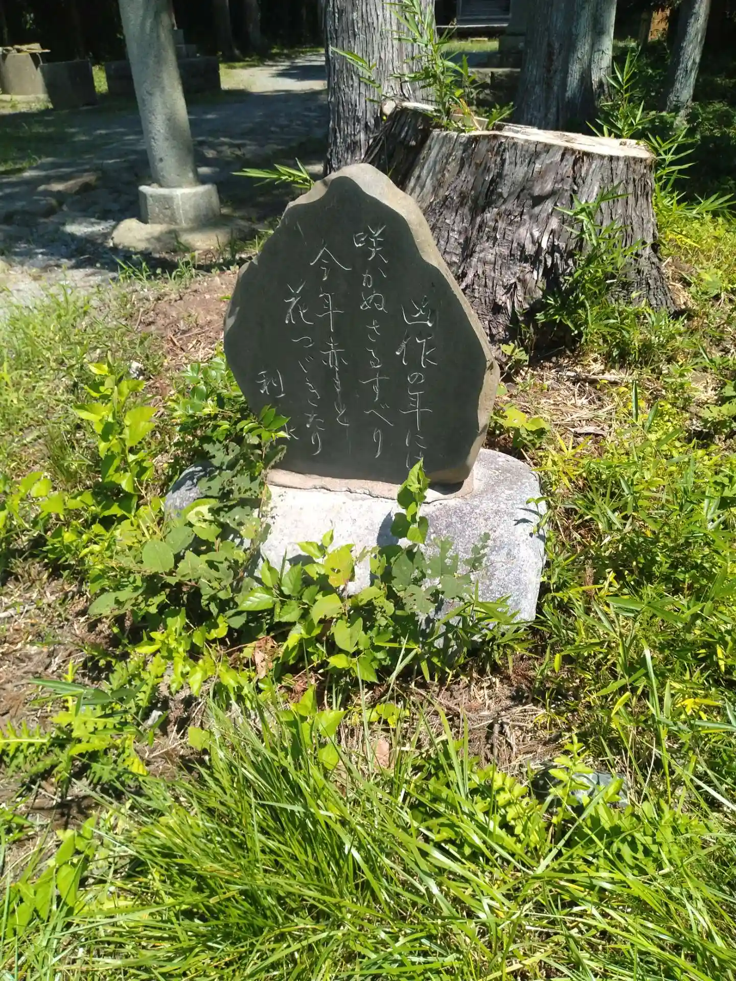 大雷神社 境内にある(凶作の年には、咲かぬさるすべり、今年赤きこと、花つじきたり)利水碑