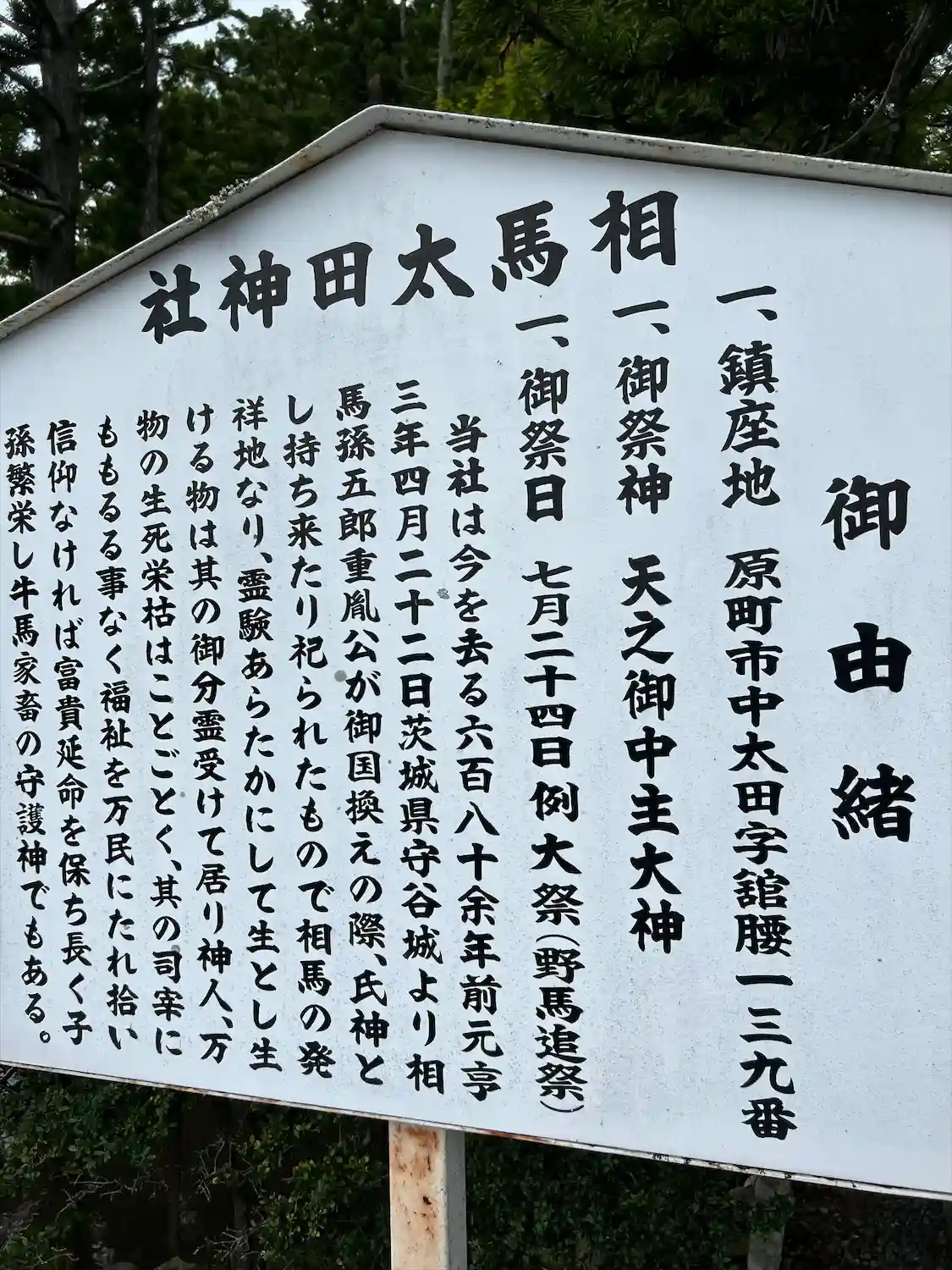 相馬太田神社の創建は平安時…