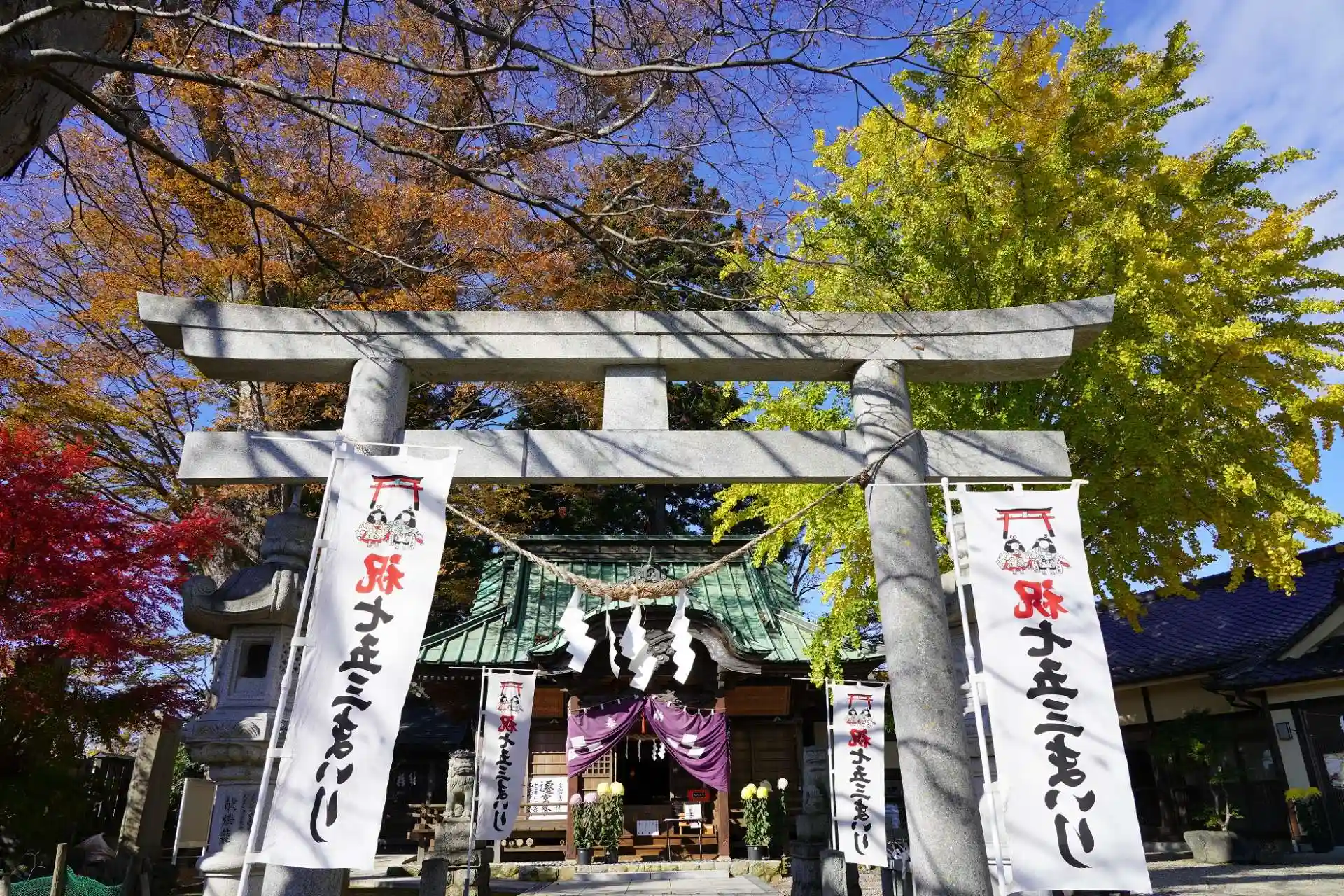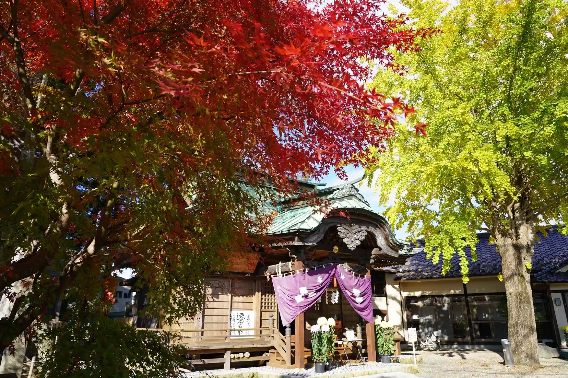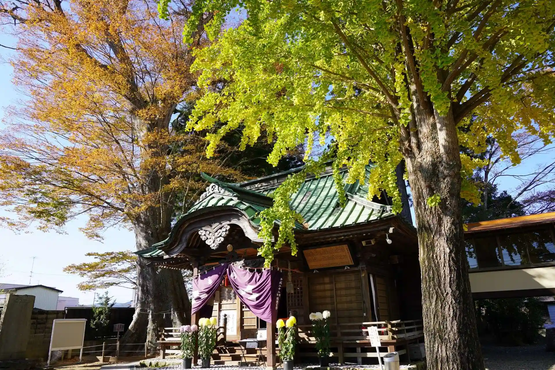 もみじ、イチョウ、御神木のケヤキが紅葉していました。