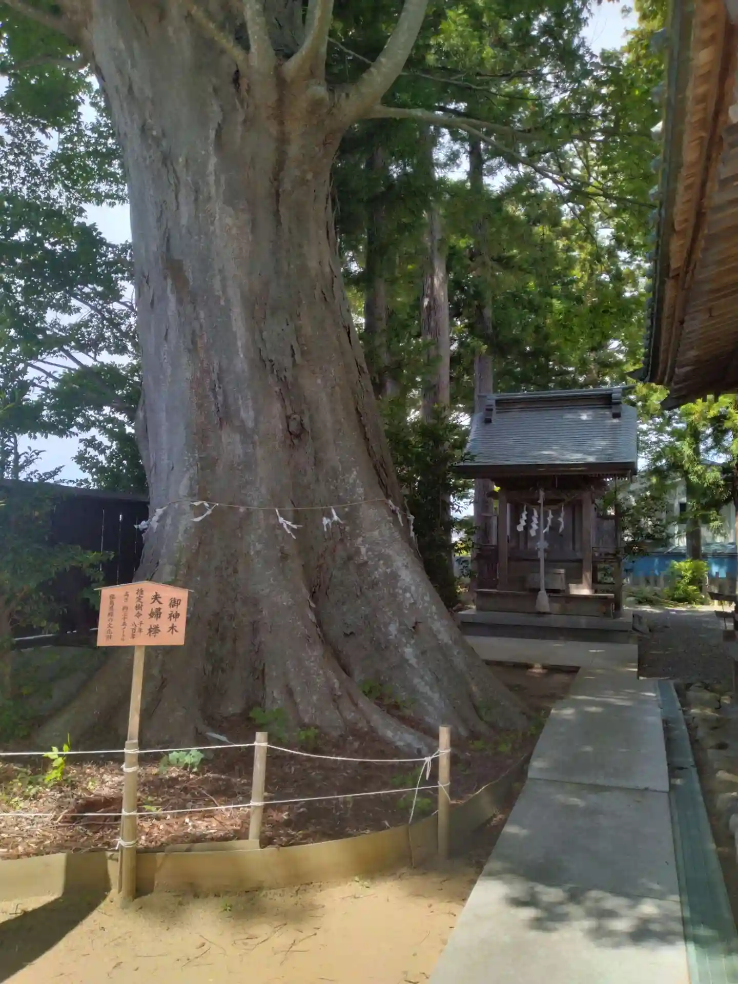 鹿島御子神社 境内にある(樹齢1000年と八百年の夫婦杉と奥側に雷神社)です