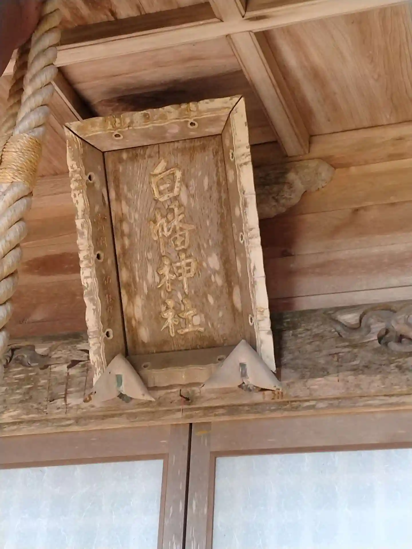 白幡神社 拝殿前上部に掲げてある(白幡神社)の扁額の様子です