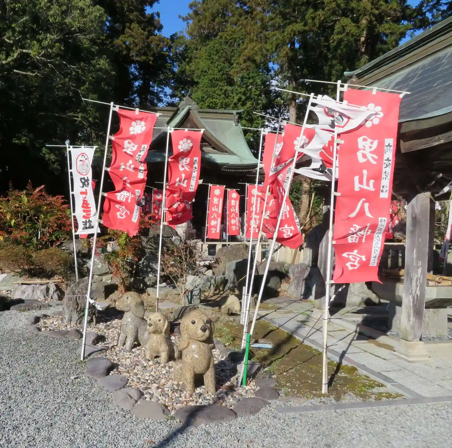 男山八幡神社 境内にある(子宝いぬ像)の様子です