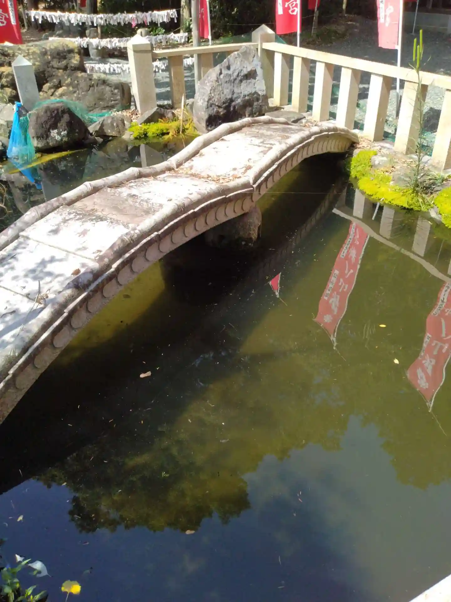 男山八幡神社 参道脇にある(鯉が泳いでいる池:鯉の餌も売ってました)
